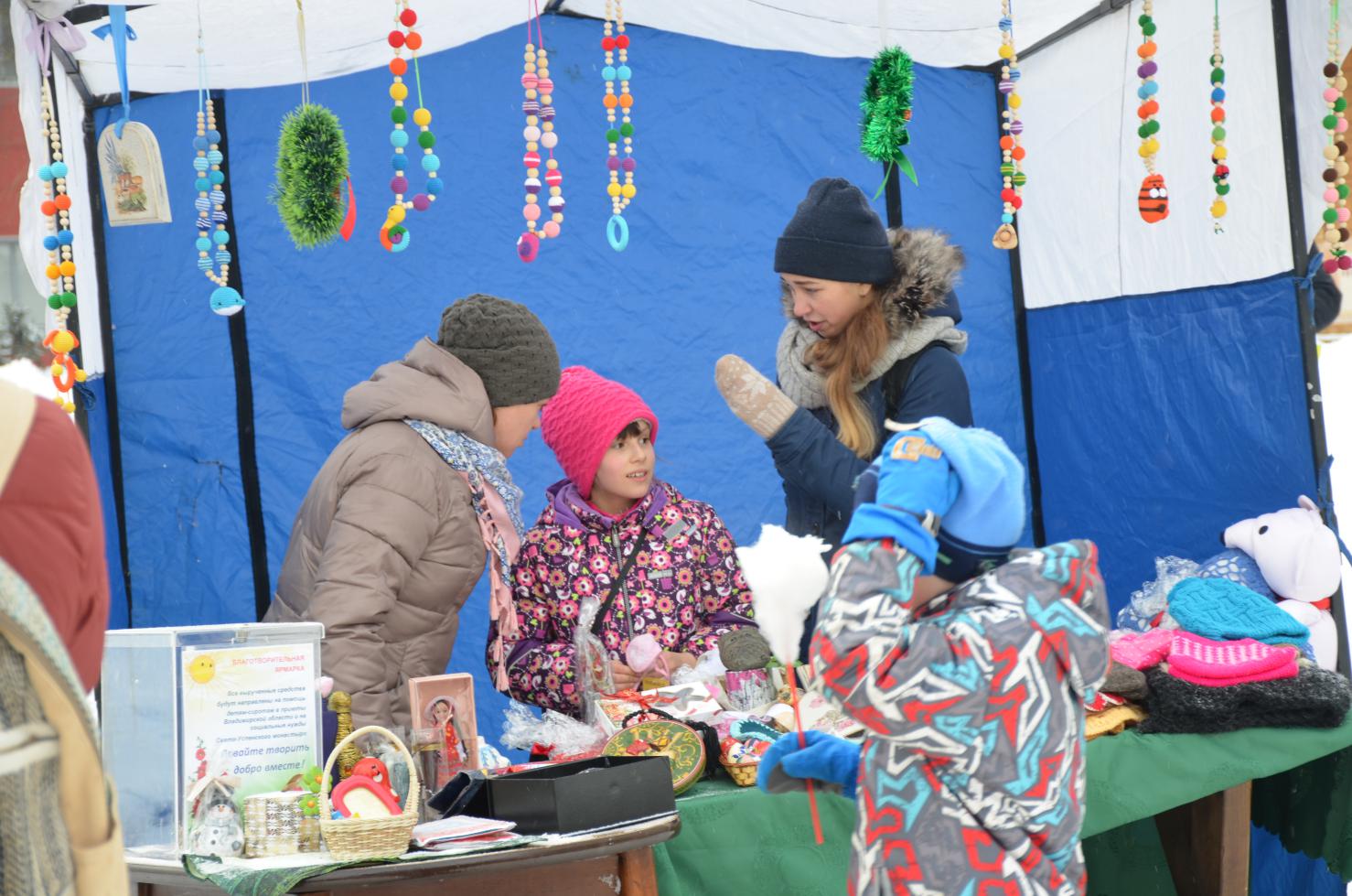 Пока взрослые подкреплялись блинами, дети в это время соревновались друг с другом на различных конкурсных станциях, на каждой из которых имели возможность заработать денежные жетоны, с тем, чтобы после обменять их на небольшие сувениры - книги, игрушки, сладости и даже сладкую вату.