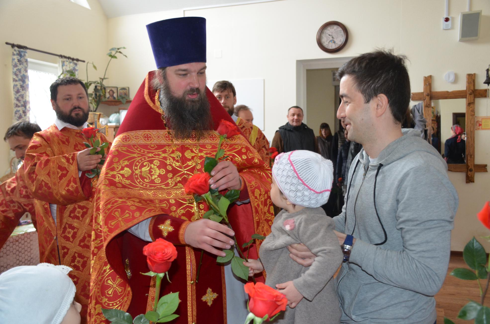 По окончании Божественной Литургии состоялось поздравление всех женщин прихода с праздником Жен-Мироносиц, который по праву считается православным женским днем. Подходя ко кресту, женщины, матушки, и даже маленькие девочки получали в подарок, преподносимые им цветы роз. Также в этот день, настоятель храма иерей Иоанн особо поздравил и вручил памятные подарки тем матушкам, чьими руками на протяжении не одного года, в храме создается благолепие и ведется о нем непрестанная забота.