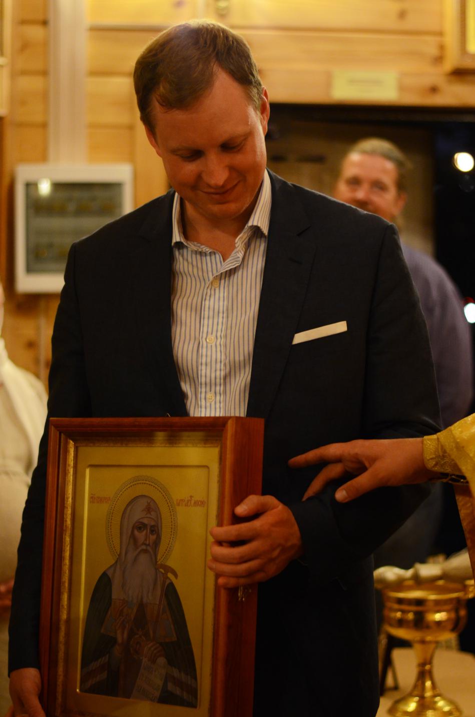 Также в этот день иерей Иоанн поблагодарил еще одного прихожанина храма, за оказанные помощь и благодеяния по отношению к строящемуся храму в честь Патриараха Ермогена, и в качестве памятного подарка преподнес благодарственное письмо и икону Небесного покровителя будущего храма.