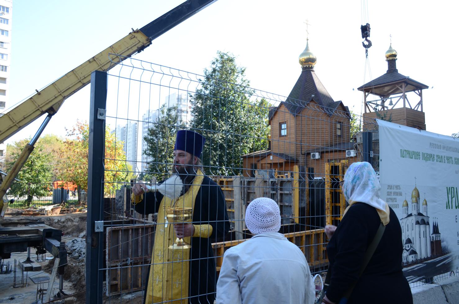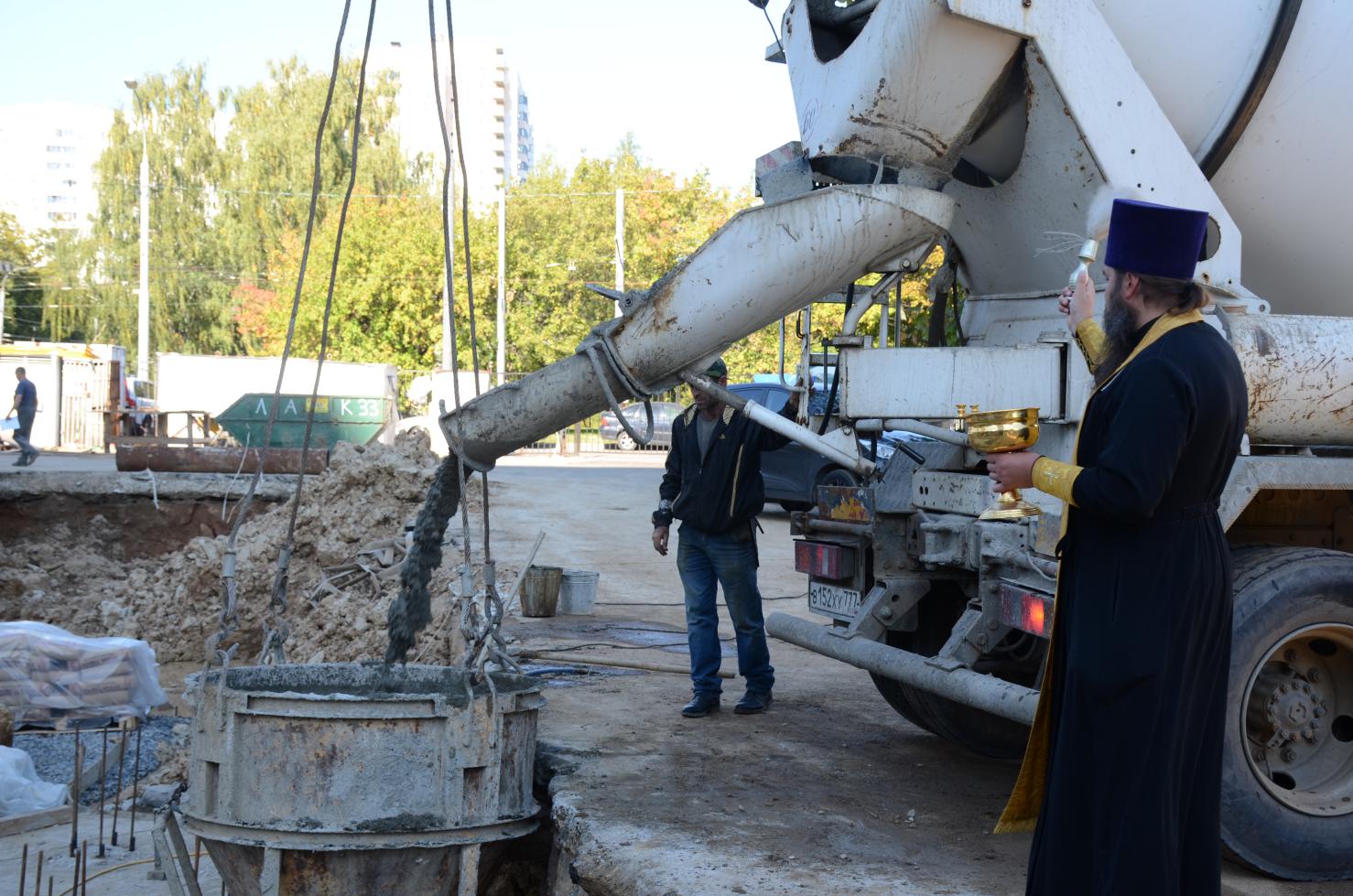 По окончании молебна иерей Иоанн освятил место строительства основного храма в честь Патриарха Ермогена, на котором в этот же день началась первая заливка ростверка бетоном.