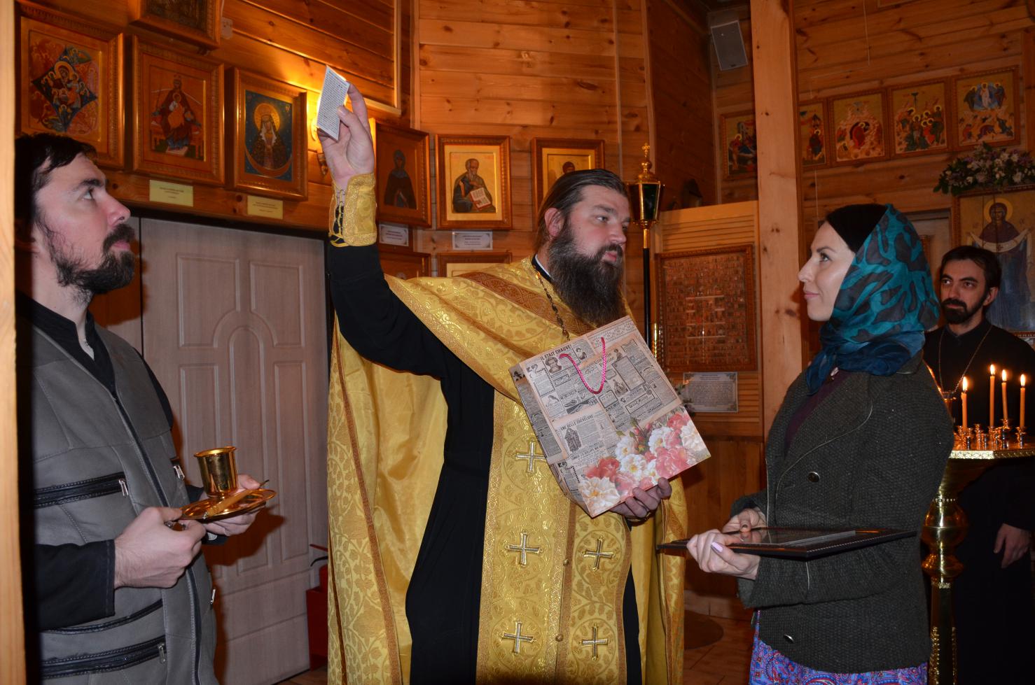 По окончании молебна иерей Иоанн вручил памятный сертификат "Брак в Кане Галилейской" семейству прихожан, трудящихся на благо храма.