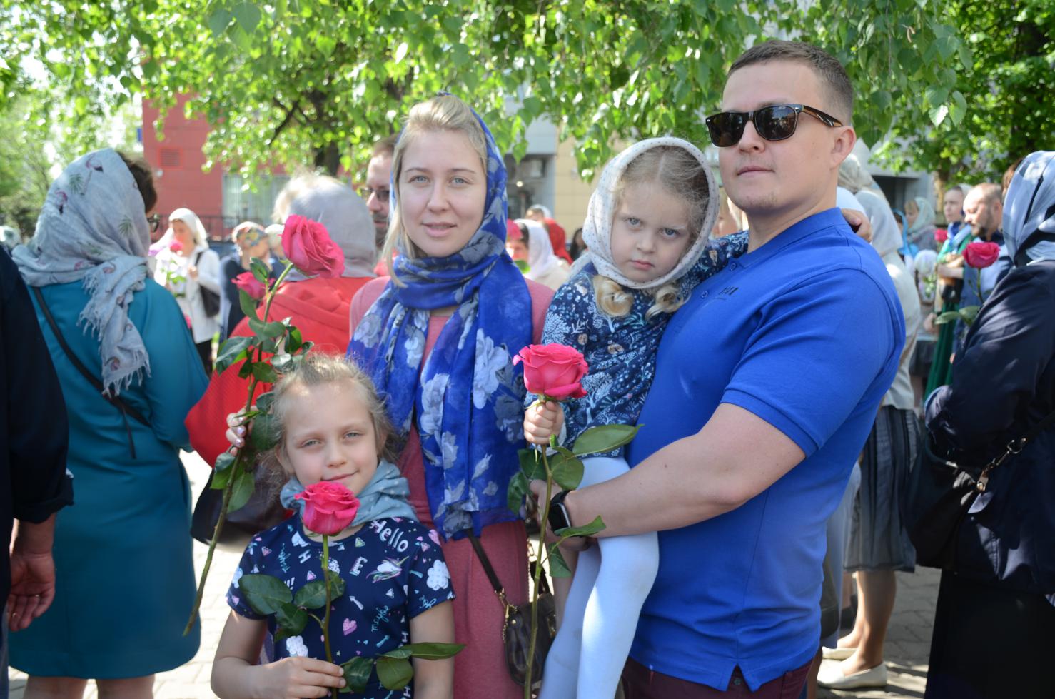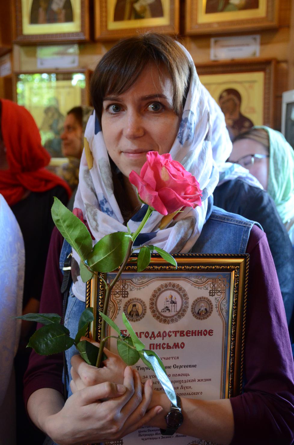 Но никто в этот день не остался обделенным, и, подходя ко кресту, остальные матушки и девочки тоже получали в подарок замечательные розы. По окончании поздравлений по территории храма совершен торжественный Крестный Ход, множеством цветов напоминавший плывущий сад и сопровождавшийся улыбками и радостными лицами прихожан.