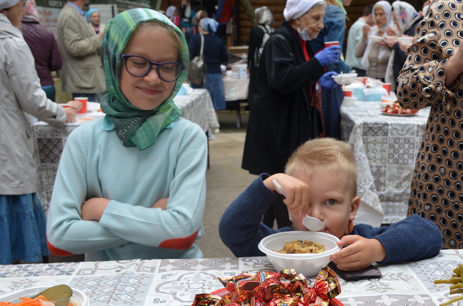 По окончании Божественной Литургии прихожане храма поздравили иерея Иоанна с днем рождения. Тёплые слова, цветы и внимание были адресованы настоятелю в этот особый для него и для всего прихода день. В свою очередь иерей Иоанн поздравил именниников, поблагодарил всех за поздравления и особенный букет, символизирующий силу и здоровье. По окончании Божественной Литургии на территории храма было организовано праздничное угощение от настоятеля - традиционные плов и ароматный чай, приготовленные на полевой кухне.