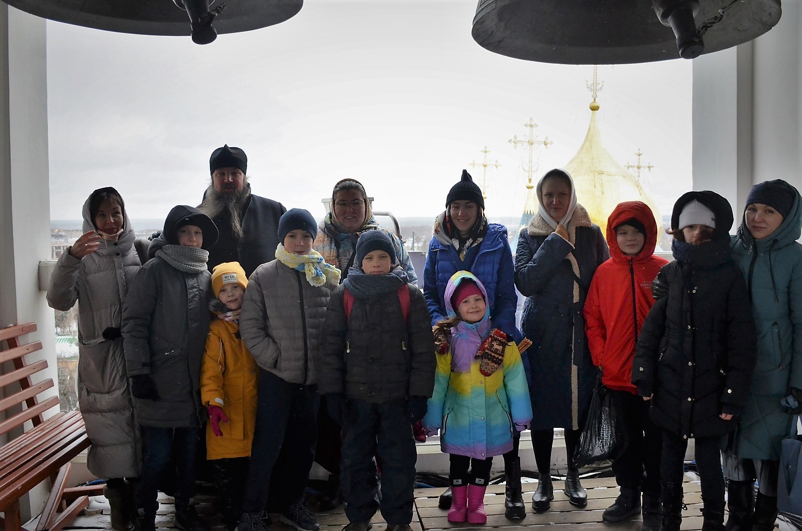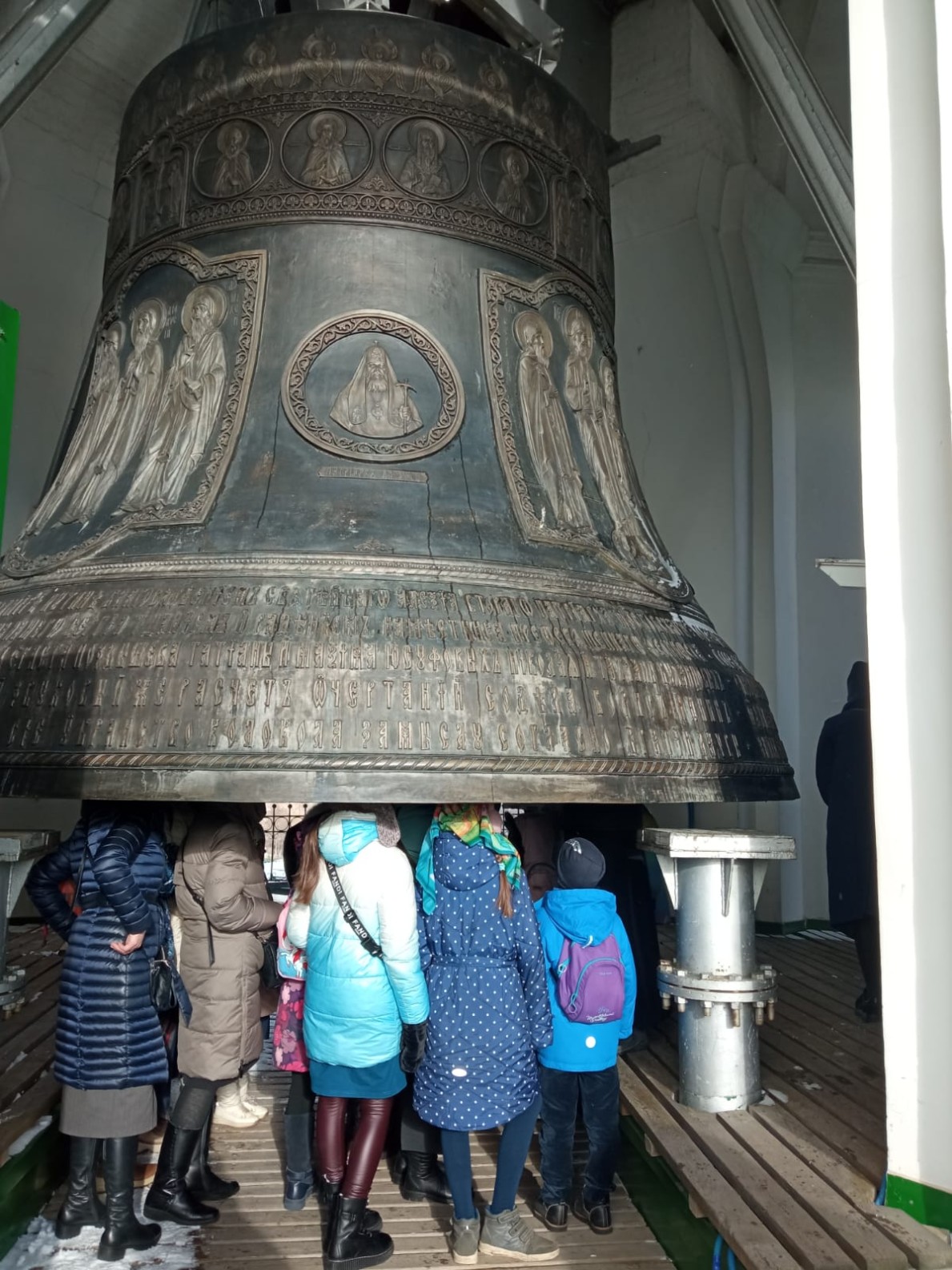 Затем участникам поездки была предоставлена возможность подняться на колокольню и услышать рассказ об ансамбле колоколов Свято-Троицкой Сергиевой Лавры. Колокольня Лавры - одна из самых высоких в России. Уникальный ансамбль колоколов, в который входят самый древний действующий колокол России (Никоновский) и самый тяжелый из действующих колоколов в христианском мире (Царь-колокол), а также великолепный панорамный вид с высоты птичьего полета - все это произвело неизгладимое впечатление на всех. И дети, и взрослые с вниманием и большим интересом разглядывали колокола, слушали рассказ экскурсовода. Интересный факт - колокола на звоннице невероятно тяжёлые и требуются усилия нескольких человек, чтобы раскачать их и добиться звона. При этом звук получается такой яркий, что слышен на несколько десятков километров вокруг!