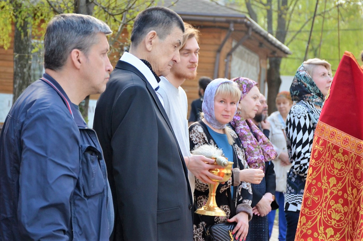 Освящение мозаичной иконы Спаса Нерукотворного на фасаде строящегося храма