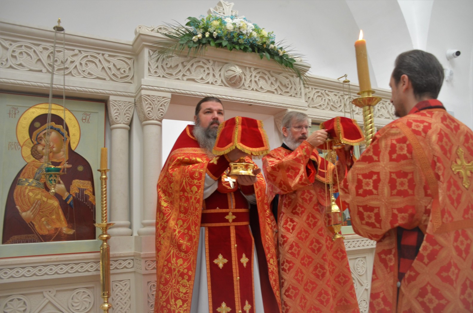 По окончании Литургии настоятель поздравил всех с праздником и обратился к прихожанам с проповедью.