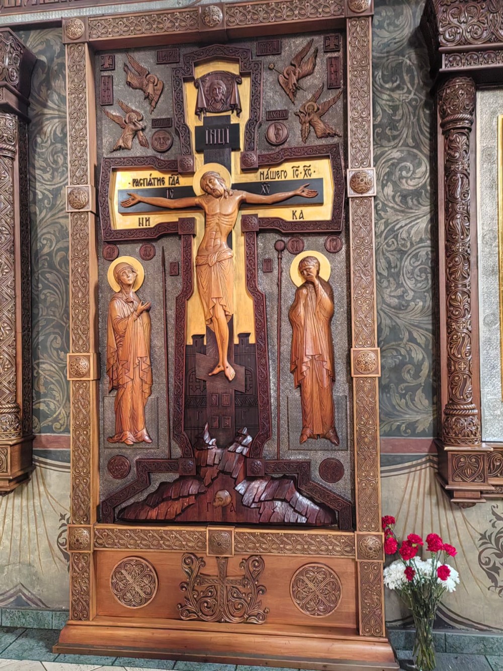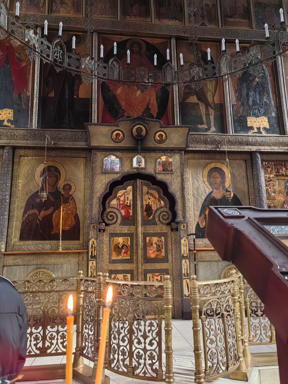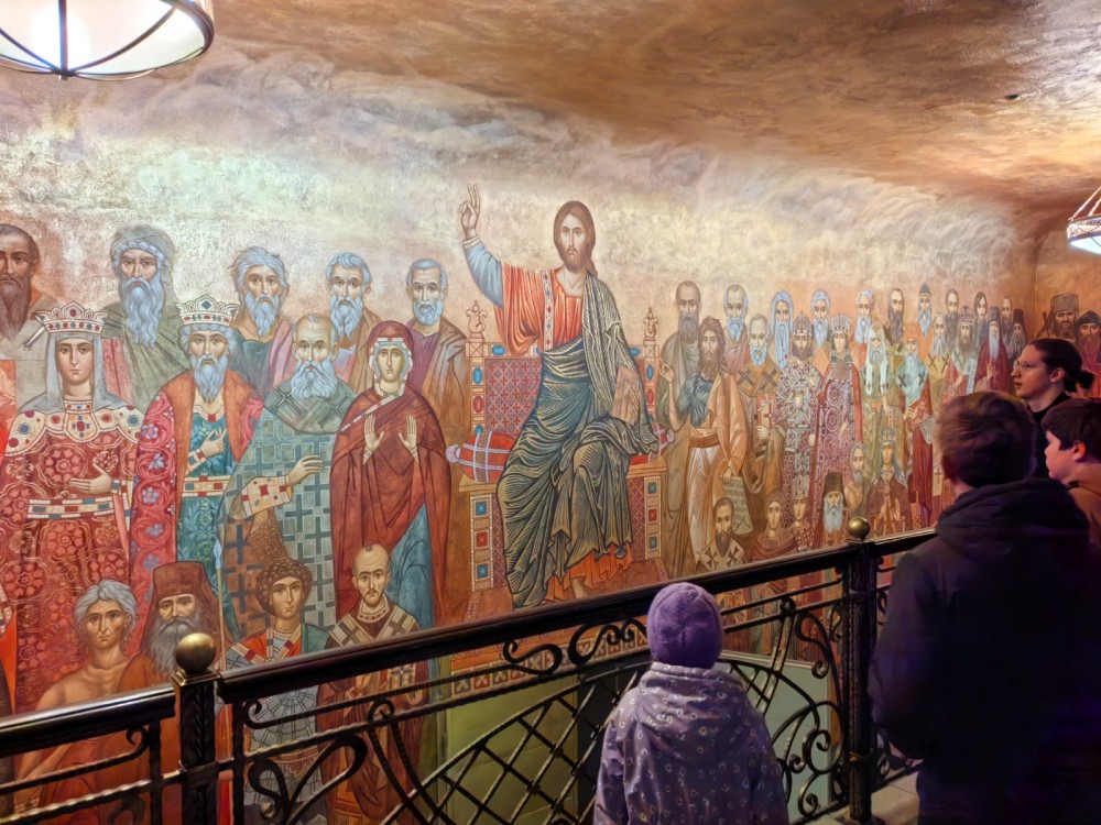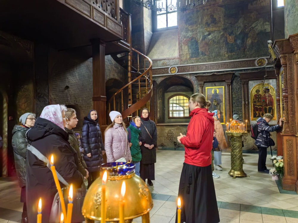 Затем экскурсия продолжилась в храме Новомучеников и исповедников Российских, где находятся мощи священномученика Илариона, познакомились с историей постройки храма и возрождения обители в конце ХХ века.