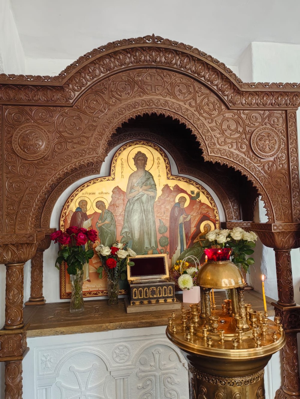 В приделе в честь преподобной Марии Египетской все участники группы услышали историю жития этой великой святой, смогли приложиться к частице мощей, накануне дня её прославления. А в приделе в честь Воскресения Христова все смогли увидеть уникальную святыню храма - точную копию Туринской плащаницы.