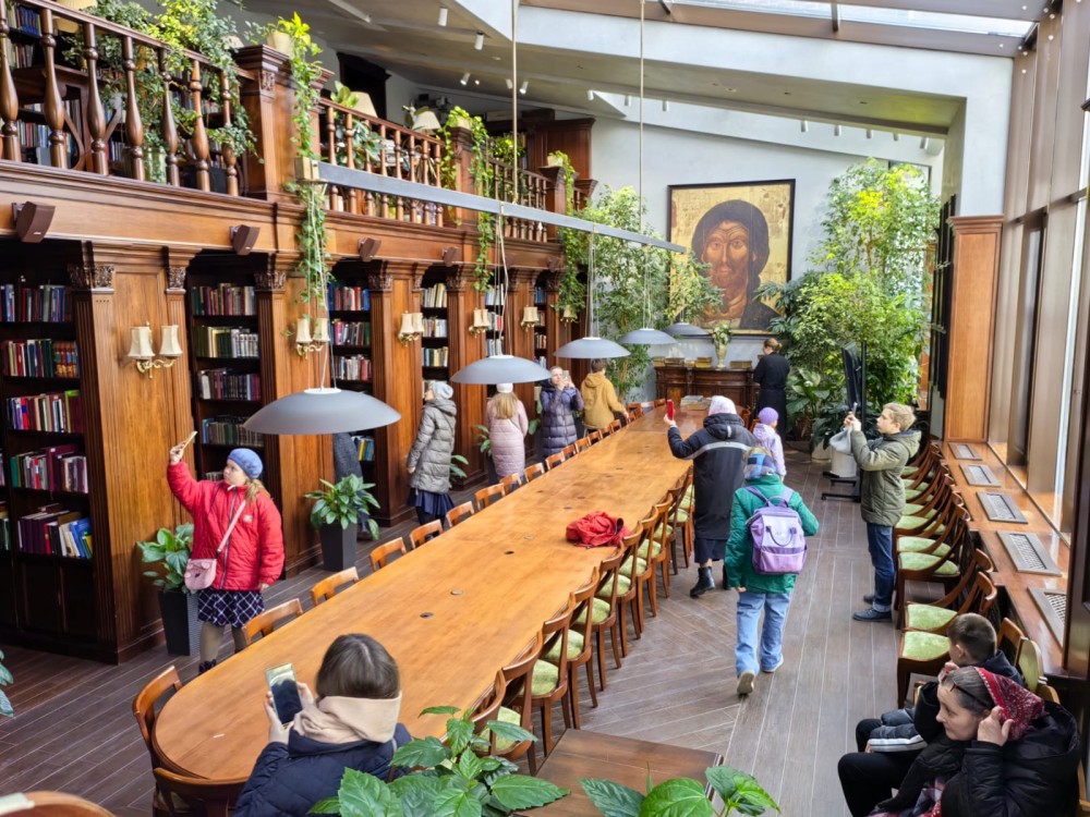 В залах Сретенской Академии вся группа экскурсантов с интересом узнала об особенностях обучения будущих священников. Особенно вдохновила своим строгим дизайном библиотека монастыря, в английском классическом стиле, а также аудитории для обучения будущего духовенства.