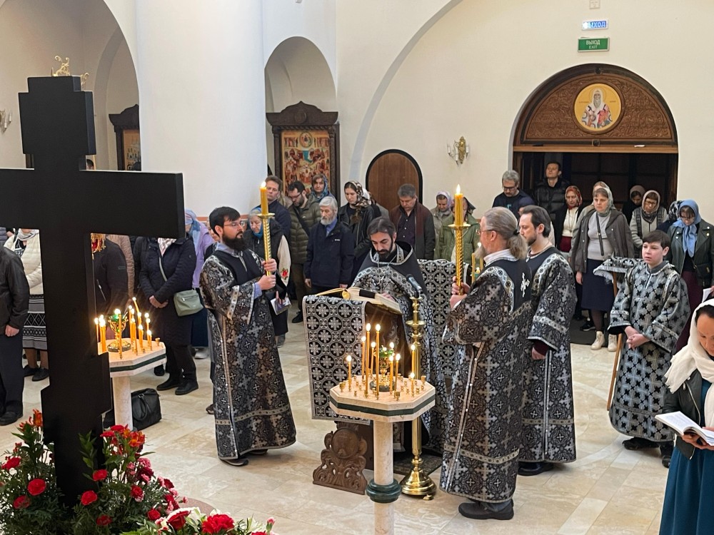Читается канон о распятии Господнем и Плач Пресвятой Богородицы.