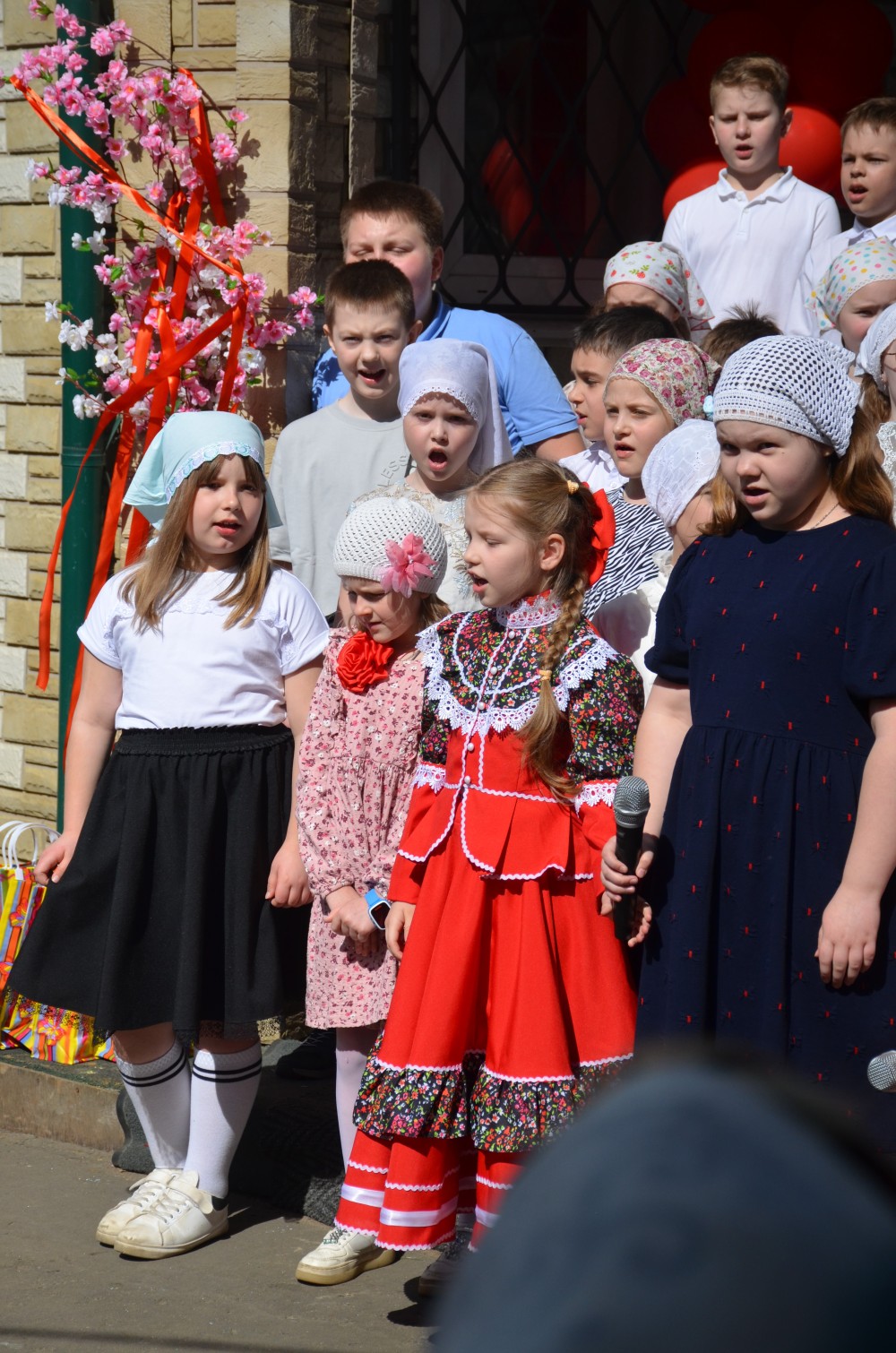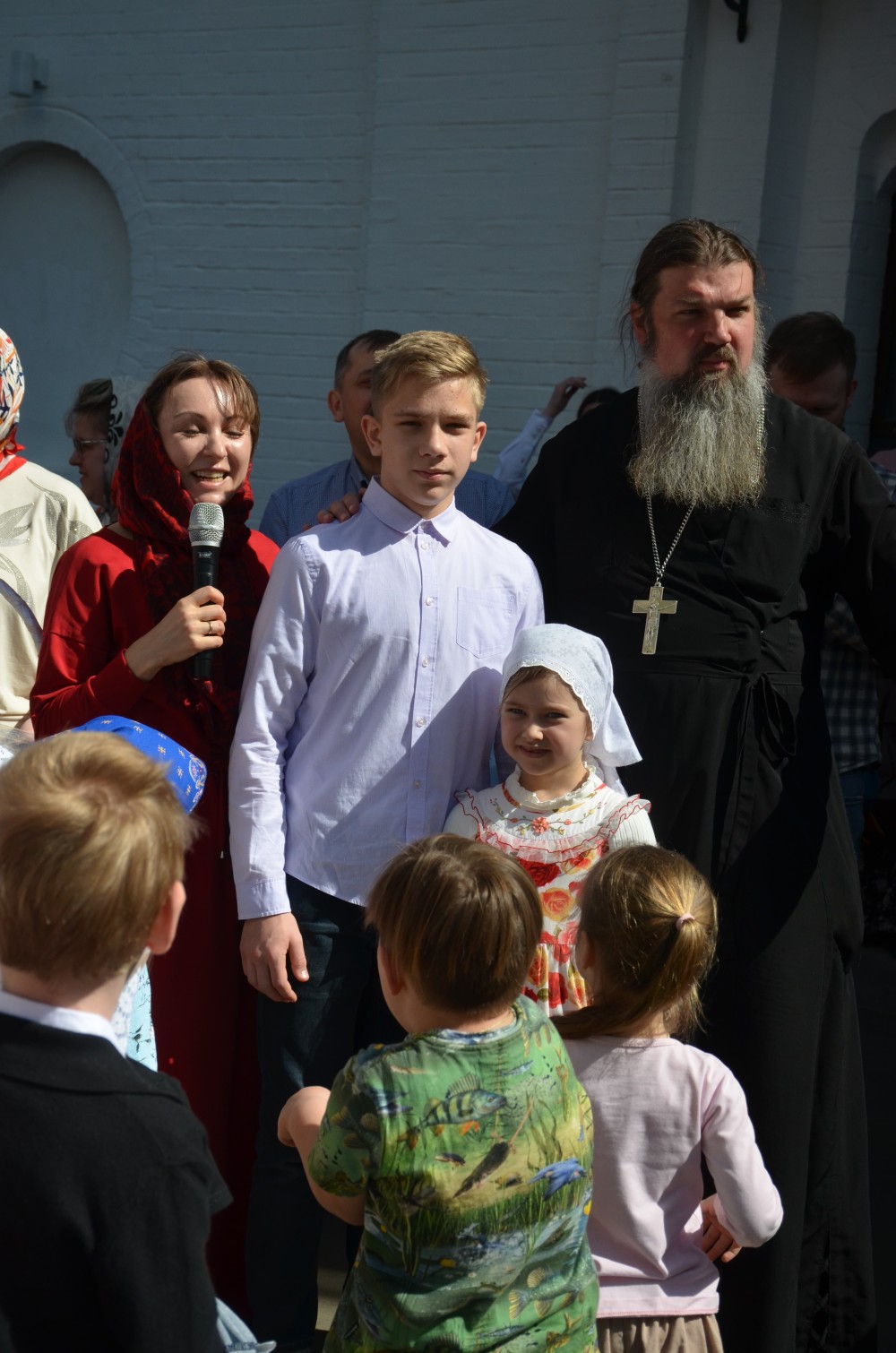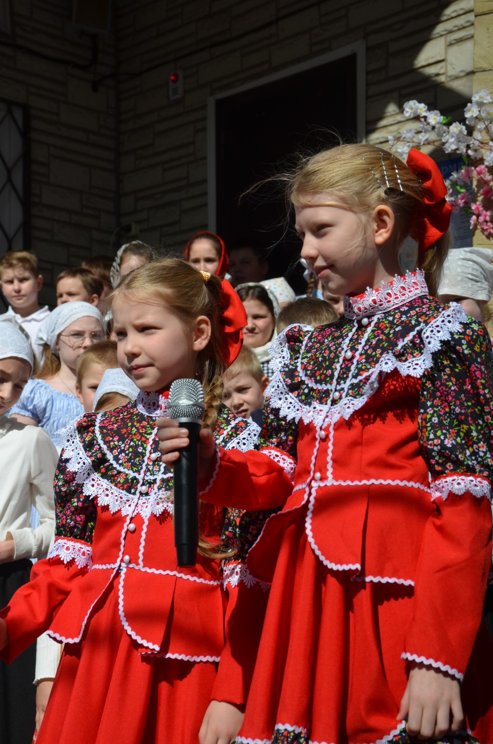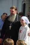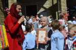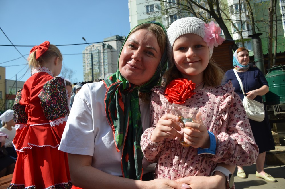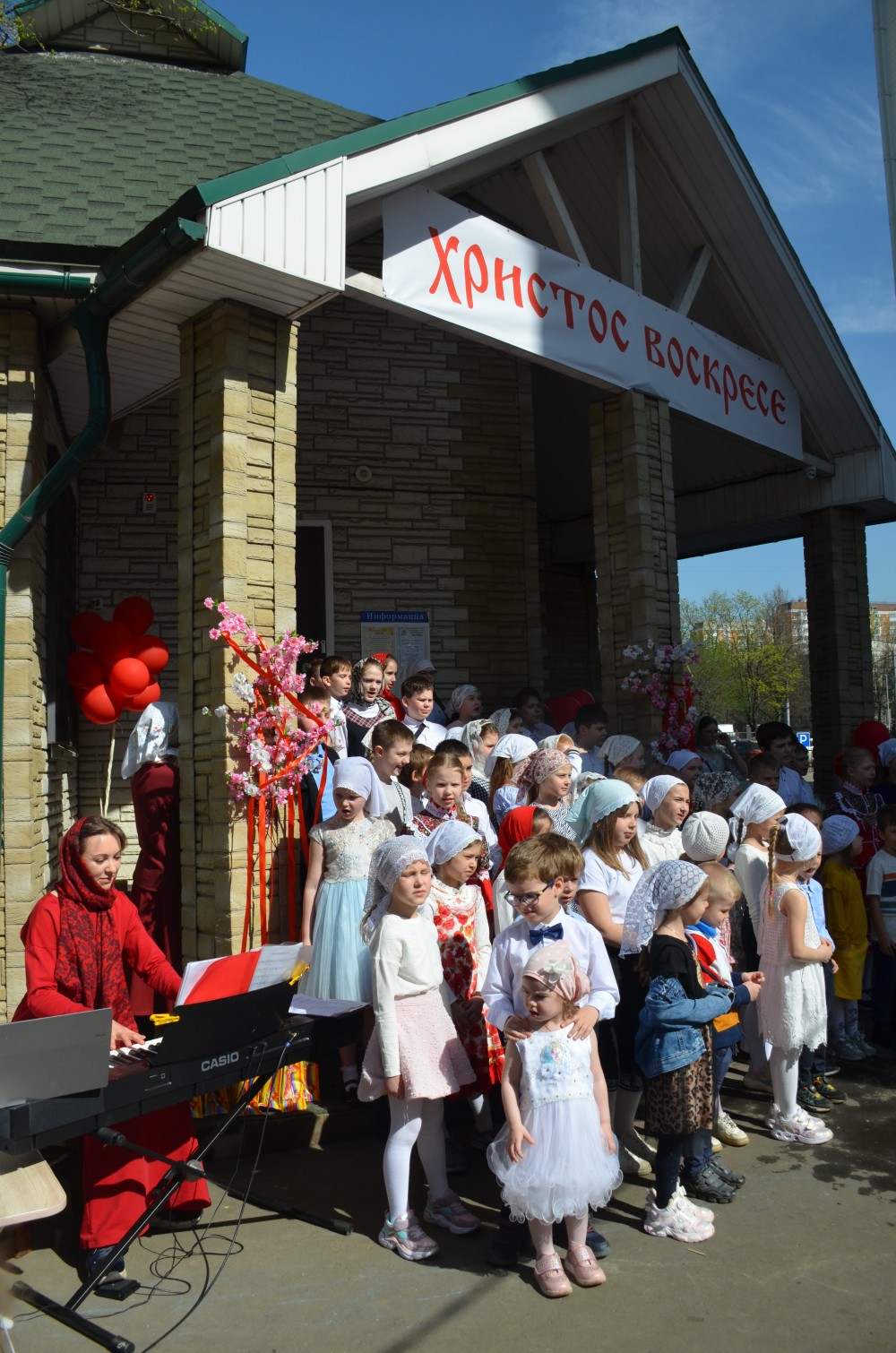 На прихрамовой площади детский хор исполнил праздничные песни под аккомпанемент директора Воскресной школы Екатерины Вадимовны Гришиной.