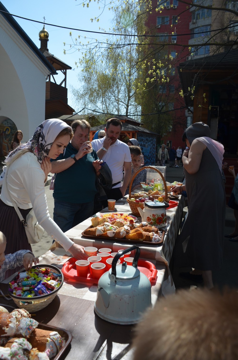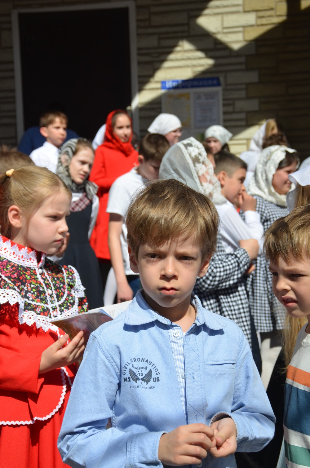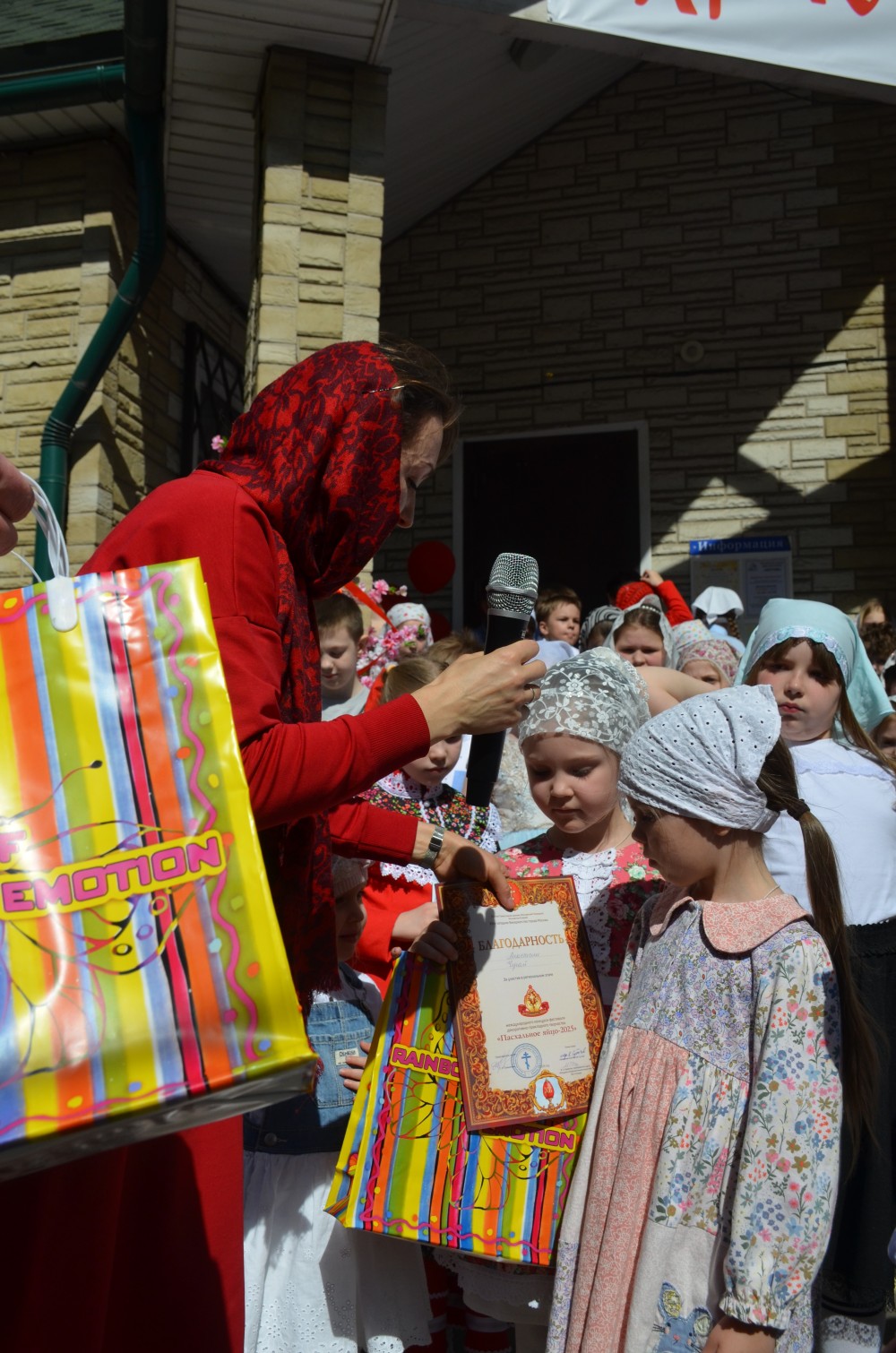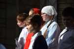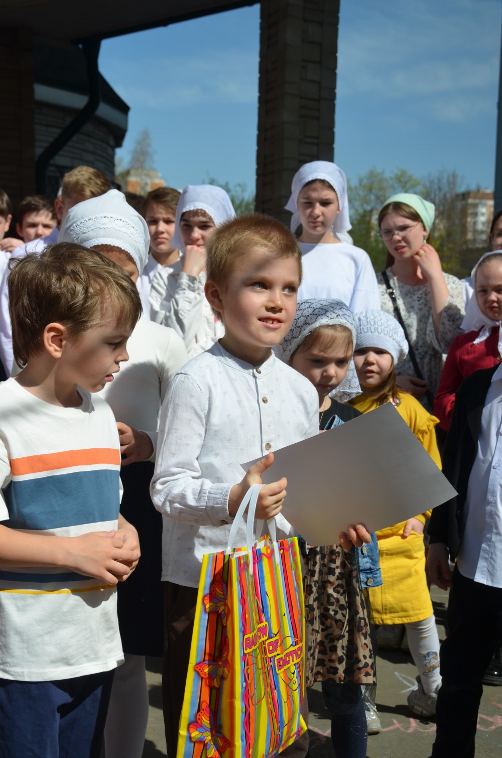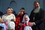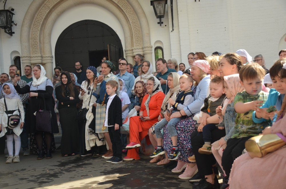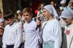 На прихрамовой площади детский хор исполнил праздничные песни под аккомпанемент директора Воскресной школы Екатерины Вадимовны Гришиной.