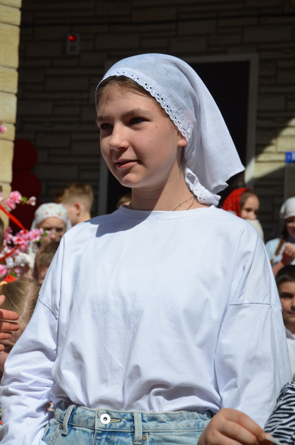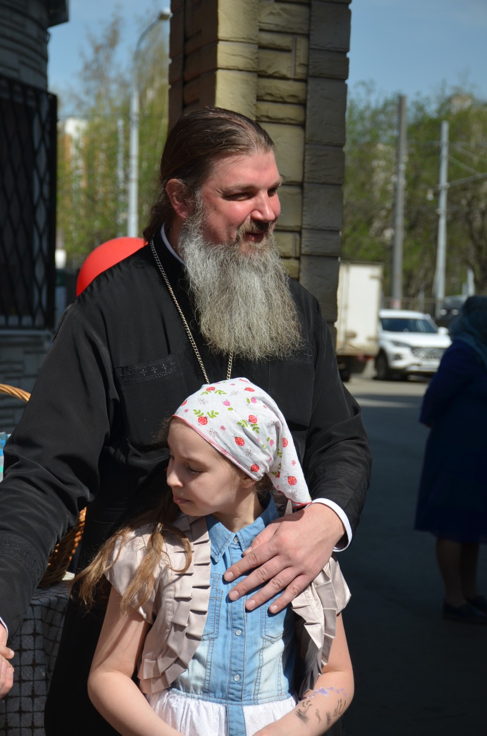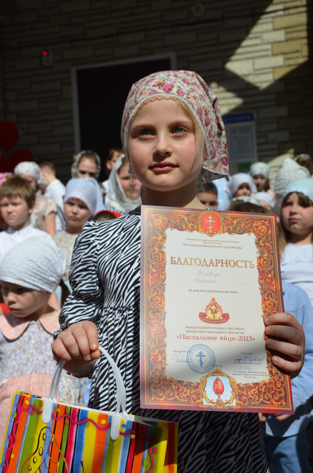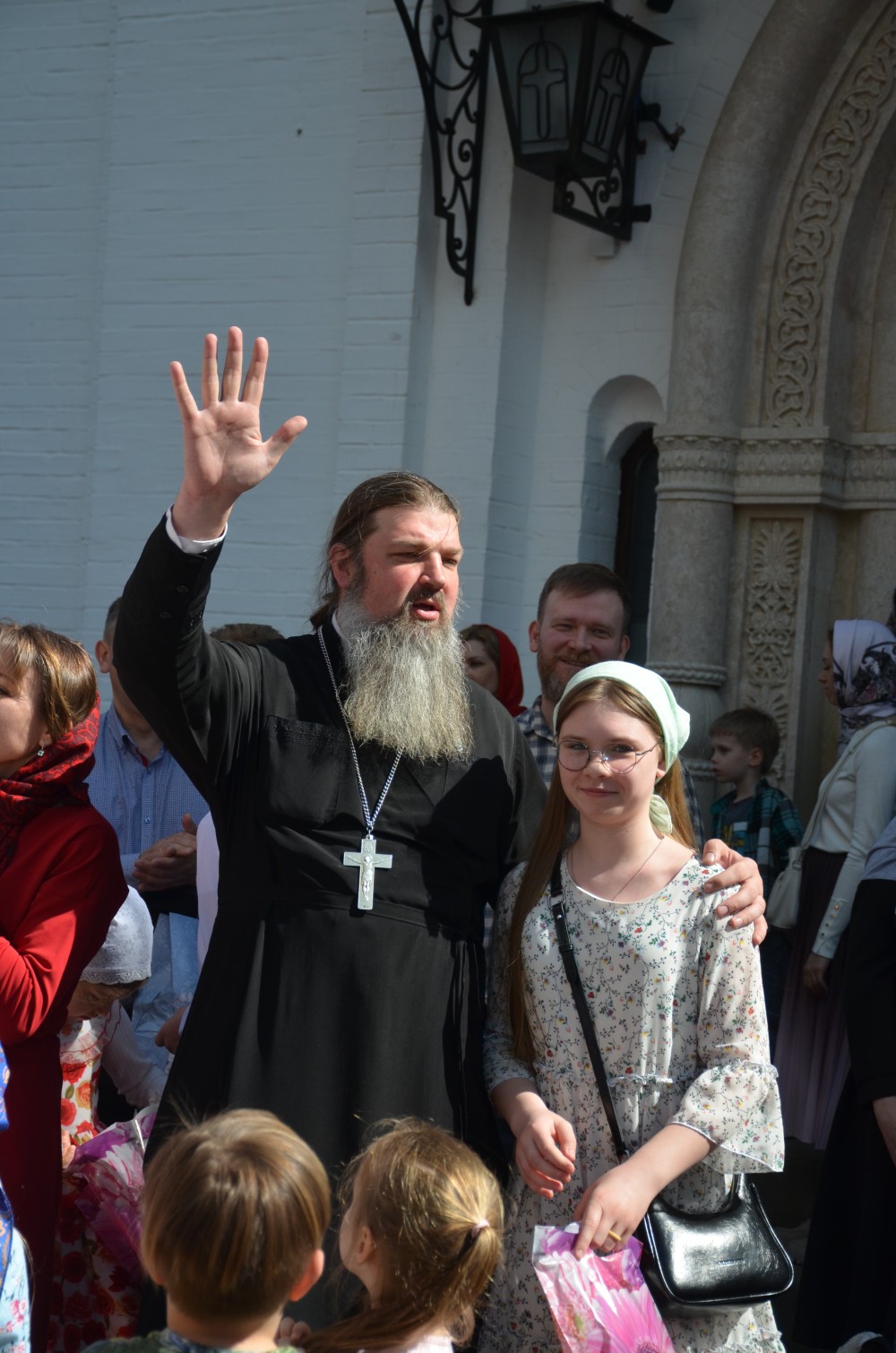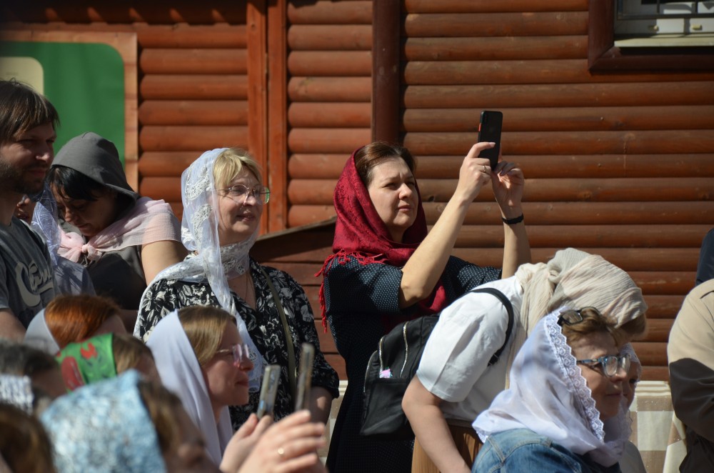 На прихрамовой площади детский хор исполнил праздничные песни под аккомпанемент директора Воскресной школы Екатерины Вадимовны Гришиной.