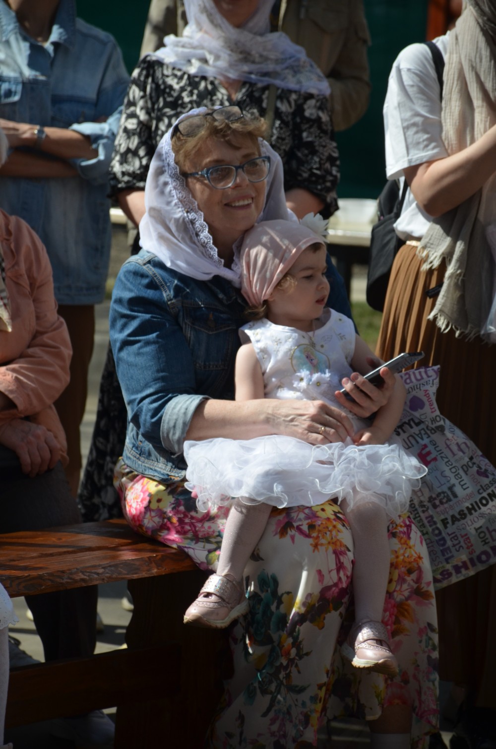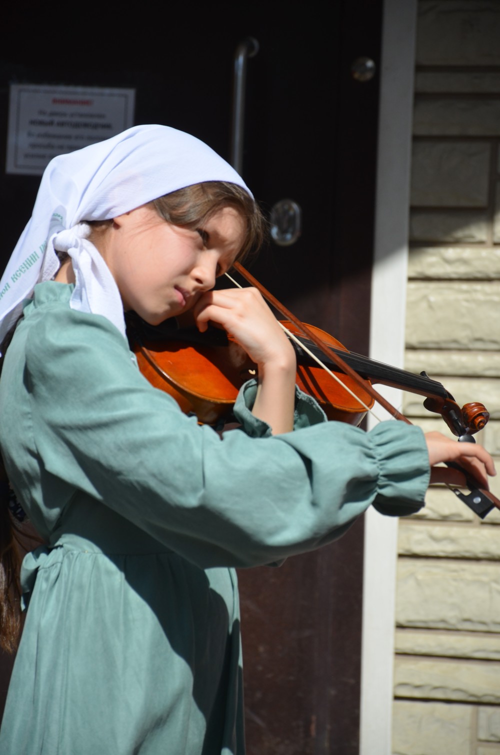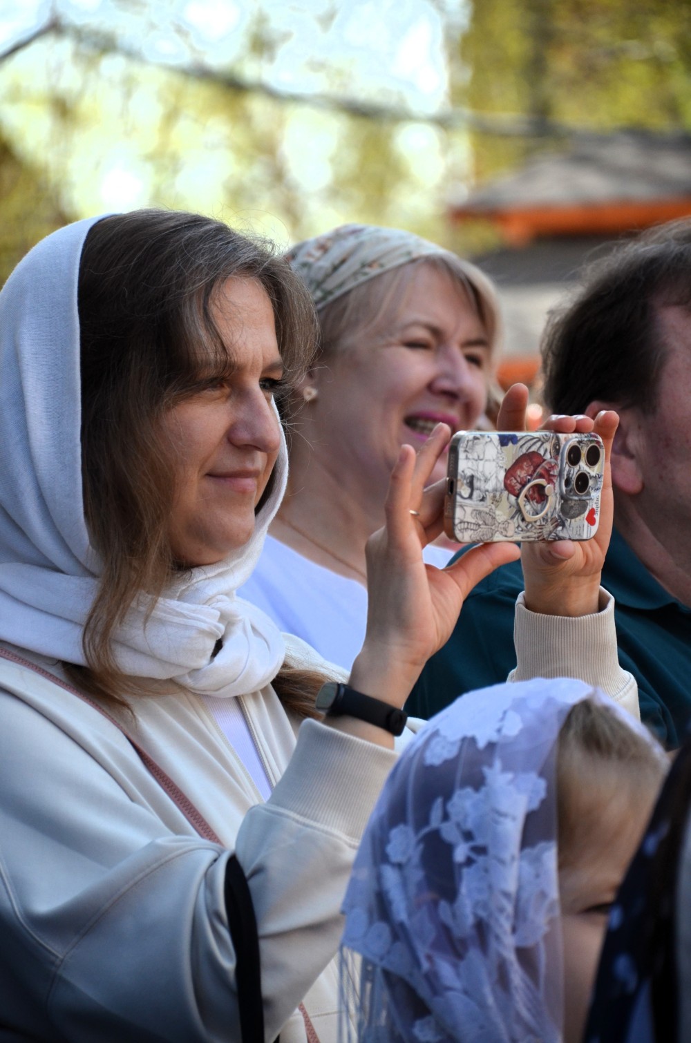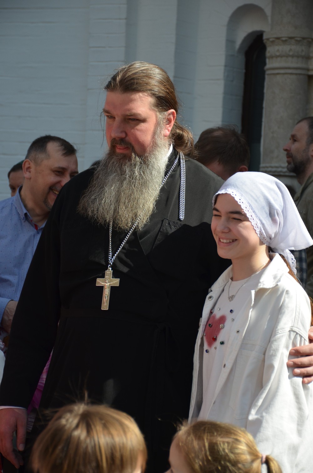 На прихрамовой площади детский хор исполнил праздничные песни под аккомпанемент директора Воскресной школы Екатерины Вадимовны Гришиной.