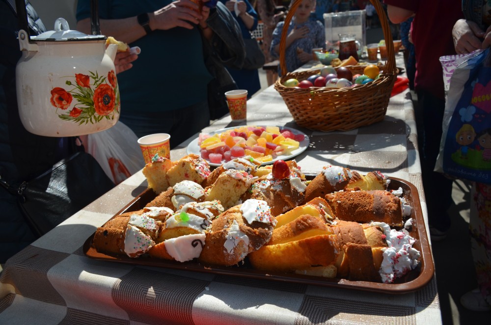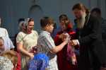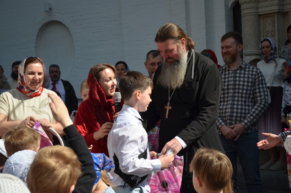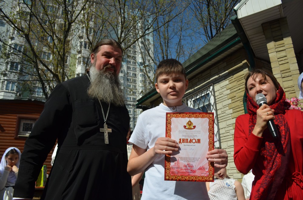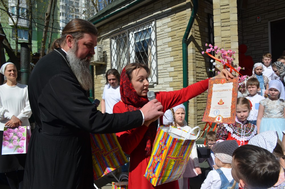 После концерта настоятель храма иерей Иоанн Омелянчук поздравил всех педагогов, воспитанников Воскресной школы и прихожан со Светлым Праздником Пасхи Христовой, вручил дипломы и благодарственные письма победителям и участникам конкурсов, а также подарки всем учащимся и пригласил к праздничному столу: куличи, яйца, чай и сладости порадовали всех гостей.