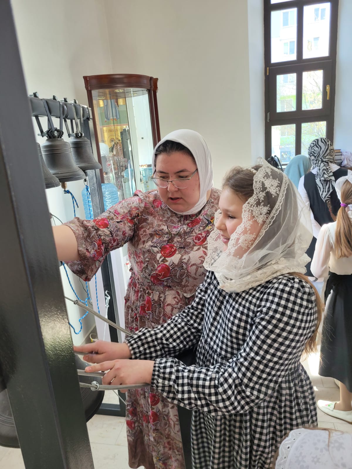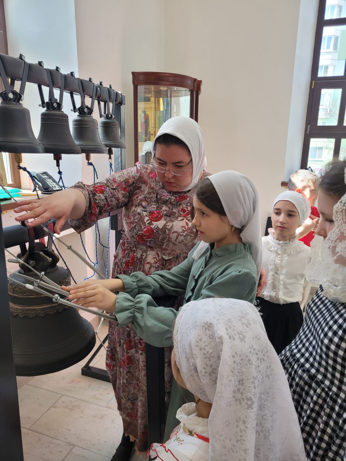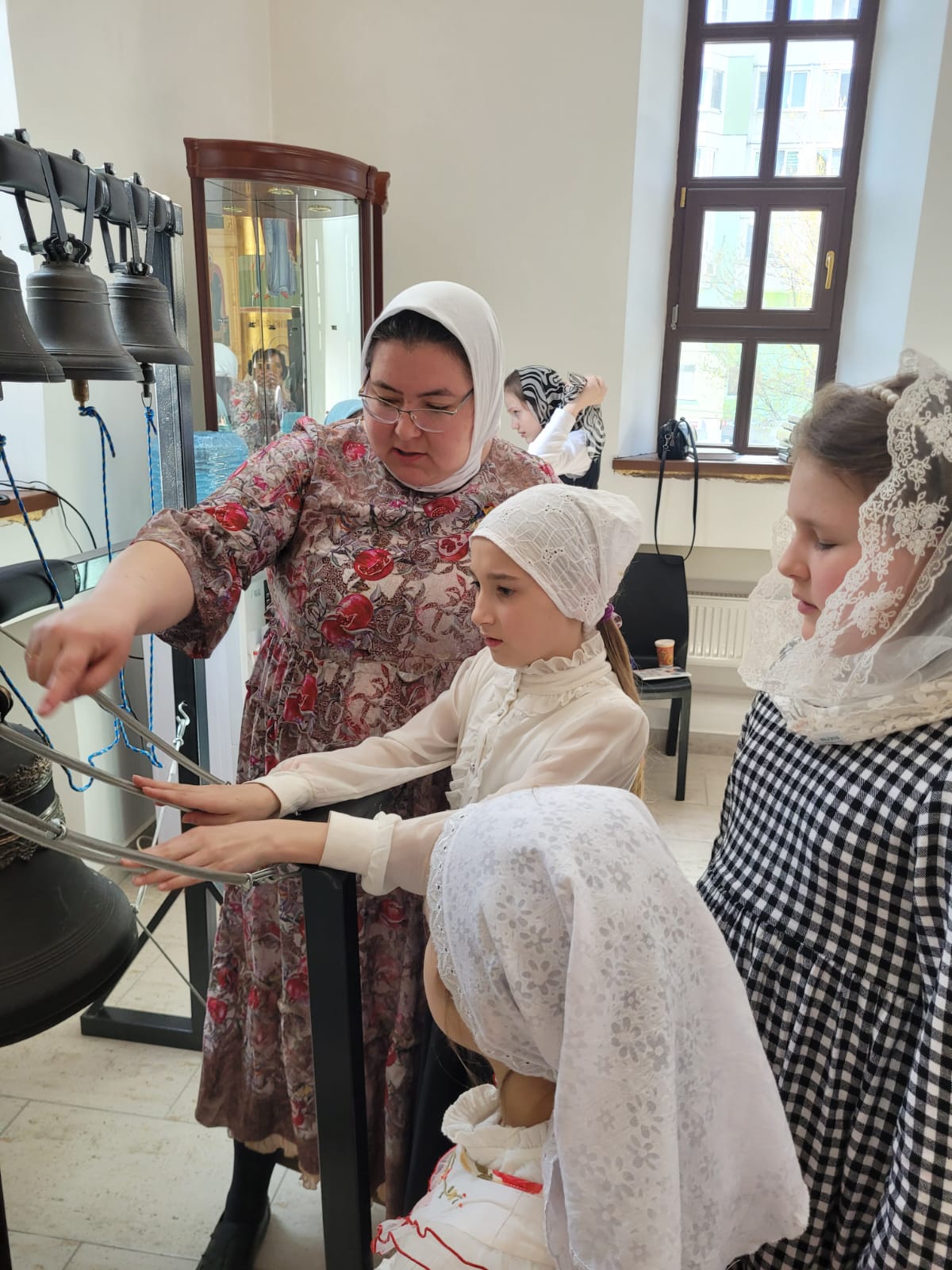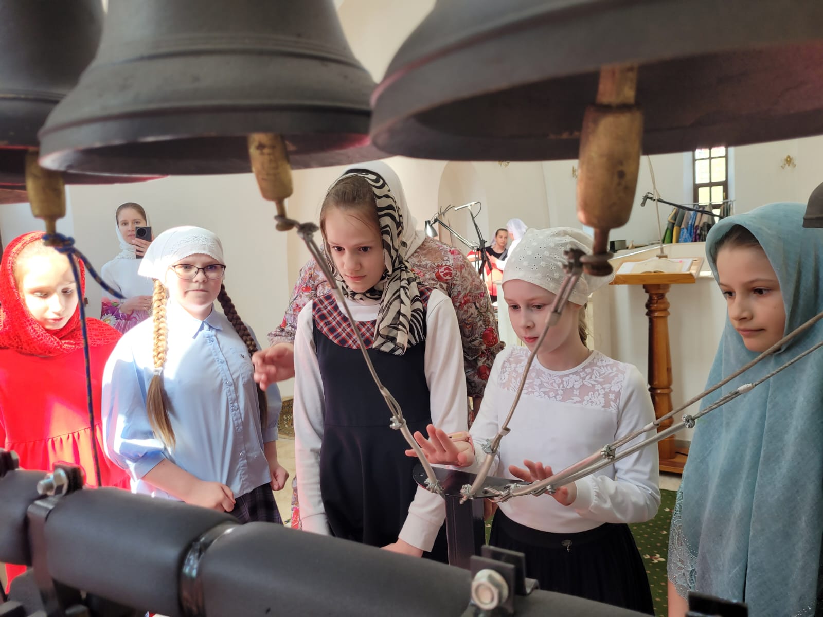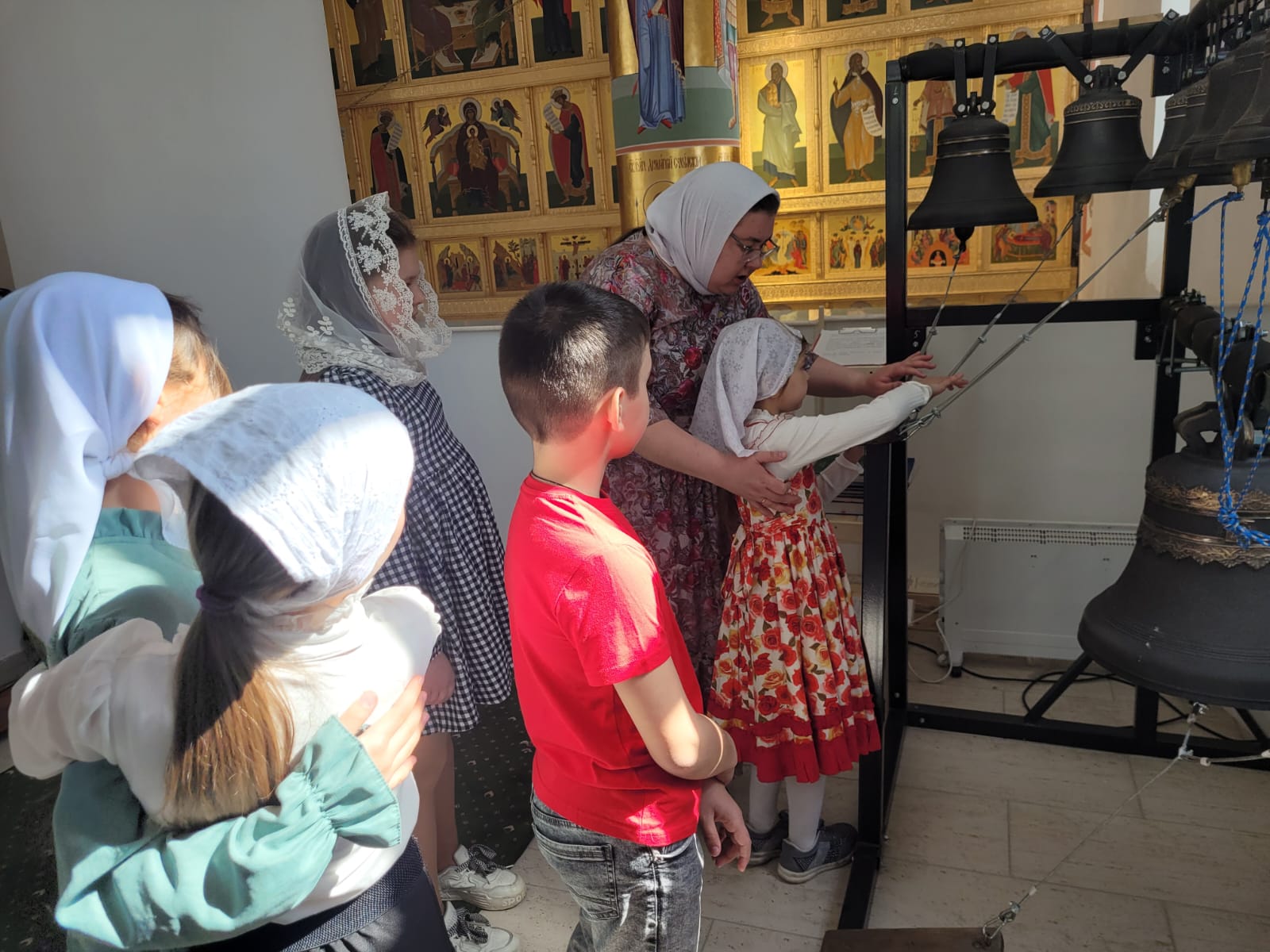 Радостным завершением праздника явилось посещение детьми храмовой звонницы, где они смогли увидеть колокола и попробовать себя в качестве звонарей. Мастер-класс провели мастера по колокольному звону Зоя Янова и Вера Омелянчук. Для ребят это стало ярким и запоминающимся событием Пасхального дня!