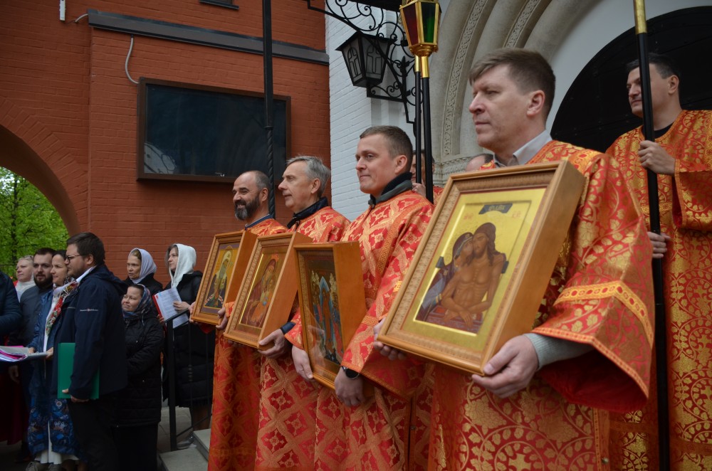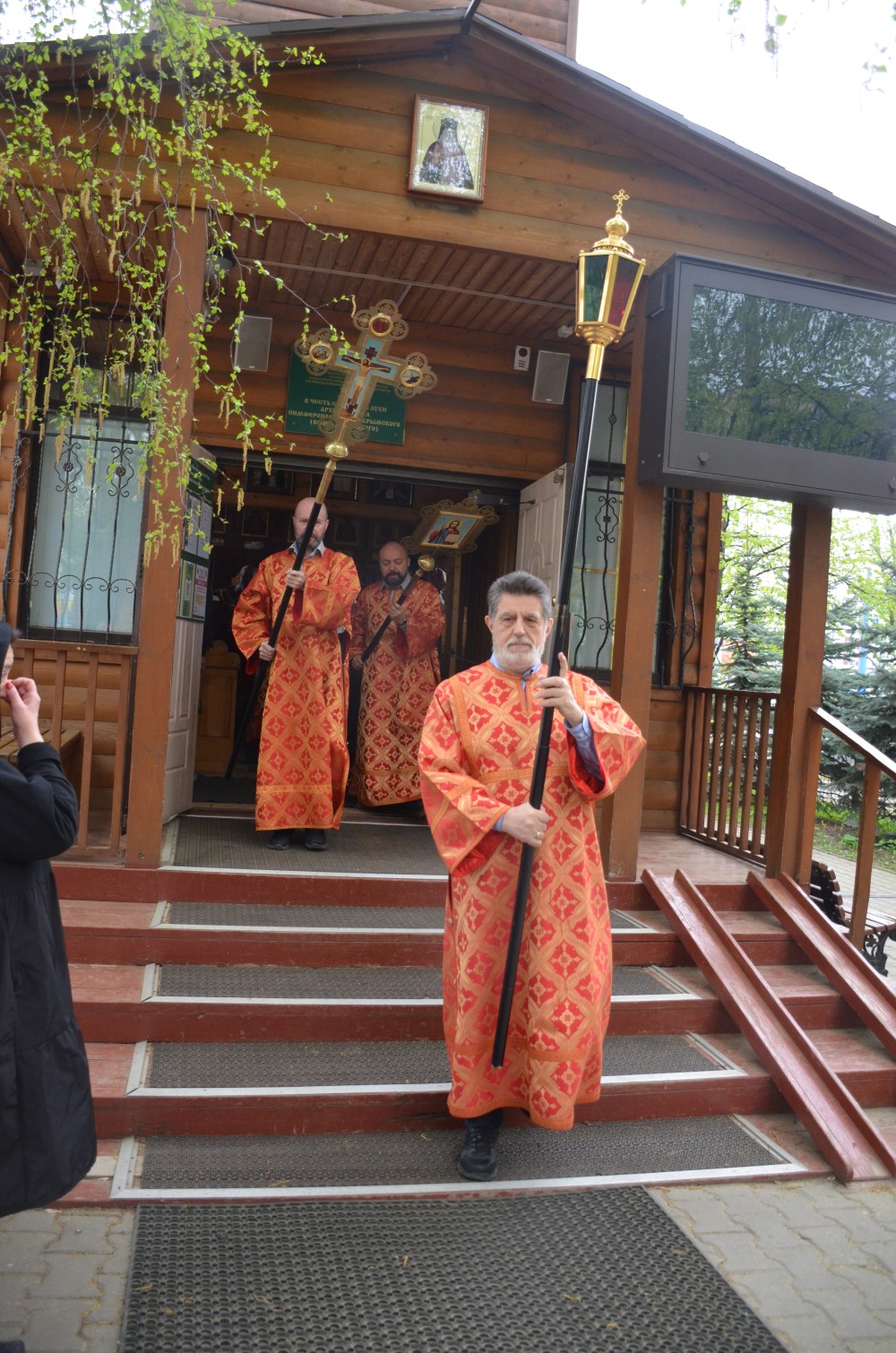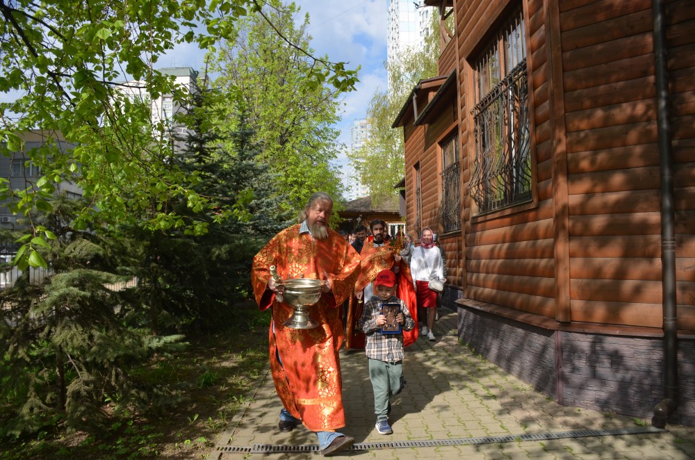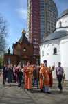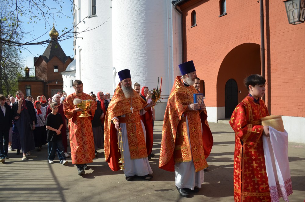 В Светлую Субботу совершен Крестный ход Светлой седмицы вокруг храма Священномученика Ермогена в сопровождении праздничного трезвона и пения народного хора.