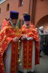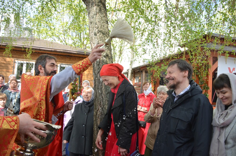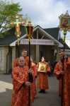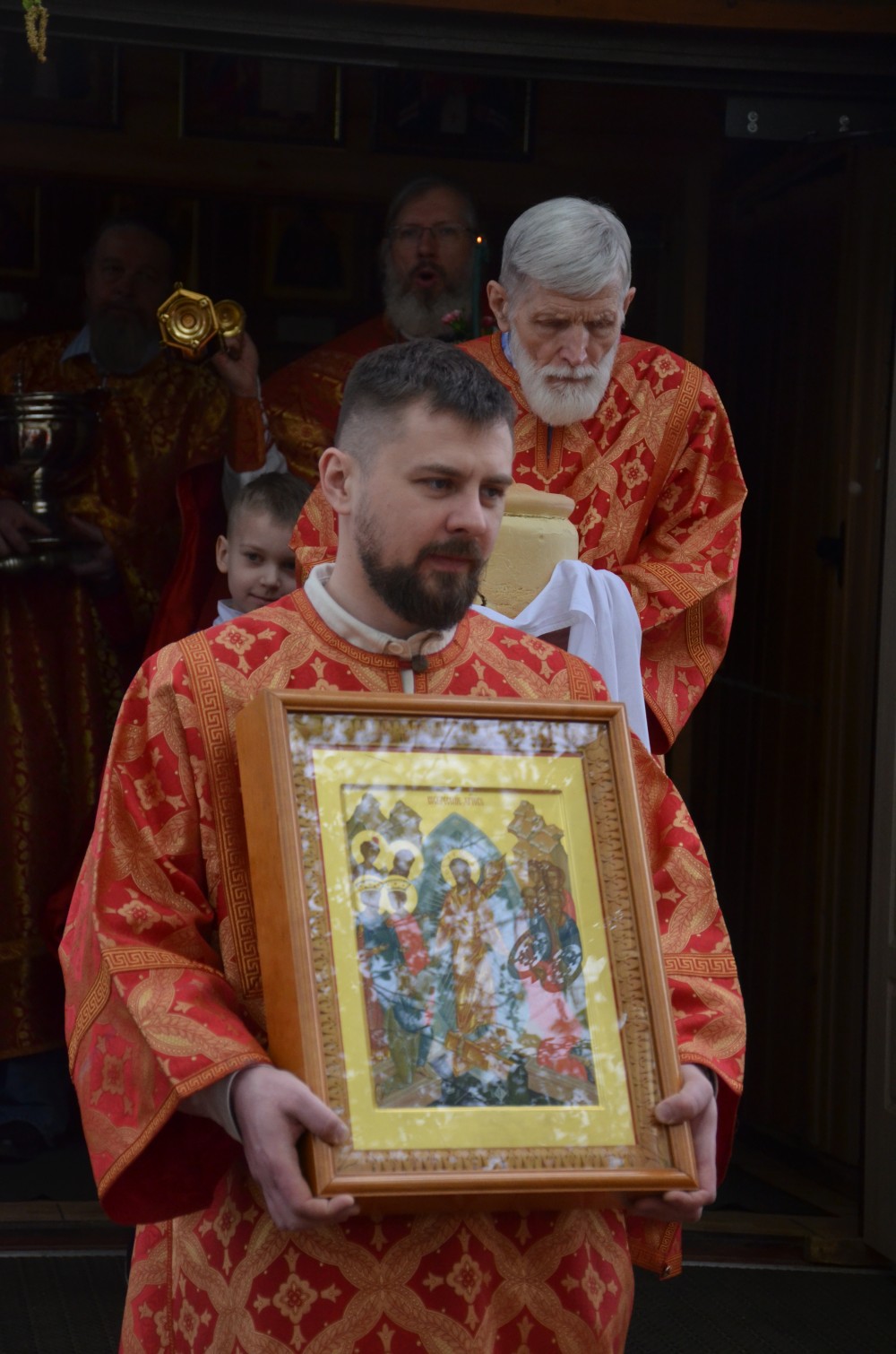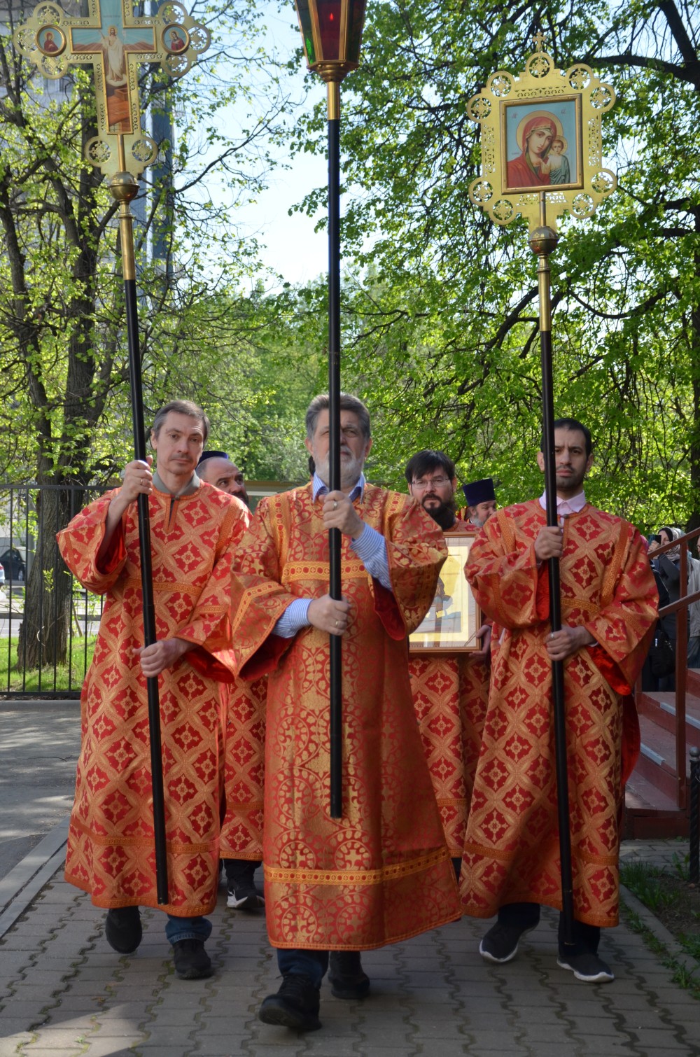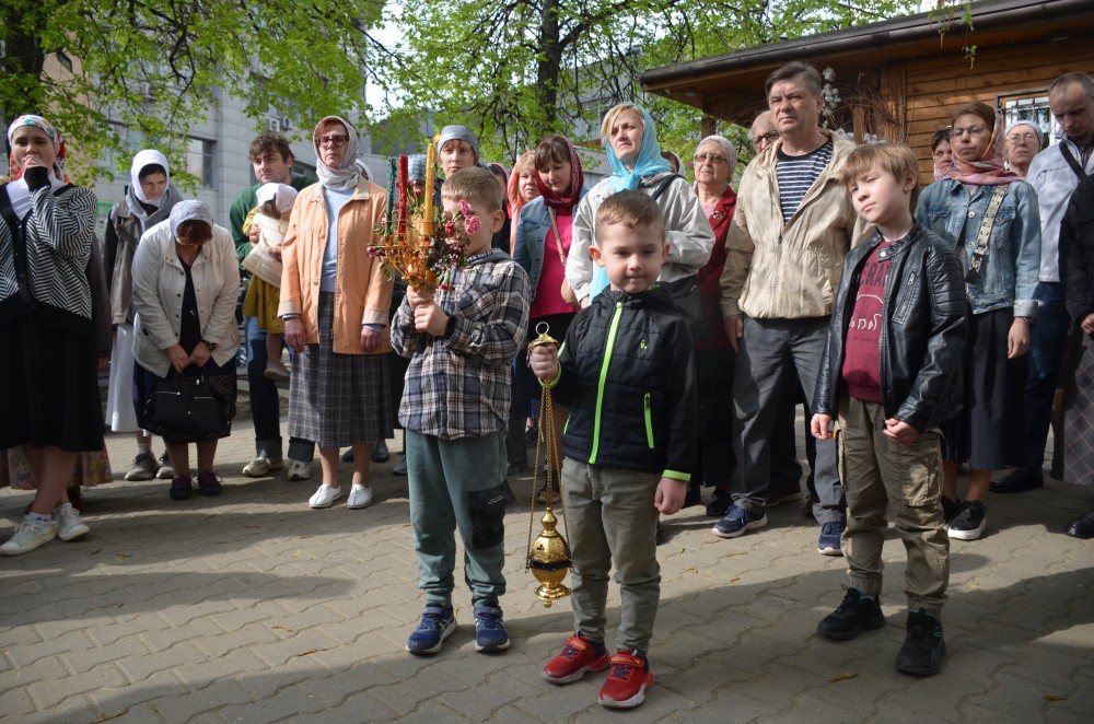 В Светлую Субботу совершен Крестный ход Светлой седмицы вокруг храма Священномученика Ермогена в сопровождении праздничного трезвона и пения народного хора.