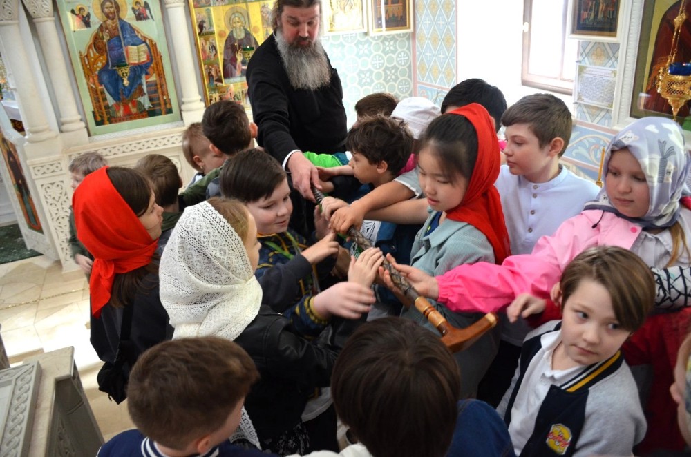 25 апреля, на Светлой седмице, в храме Священномученника Ермогена, Патриарха Московского и всея Руси, чудотворца, в Зюзине, состоялась экскурсия для учеников 3-го и 4-го классов и родители учащихся школы №504. Экскурсию провел настоятель храма иерей Иоанн Омелянчук.