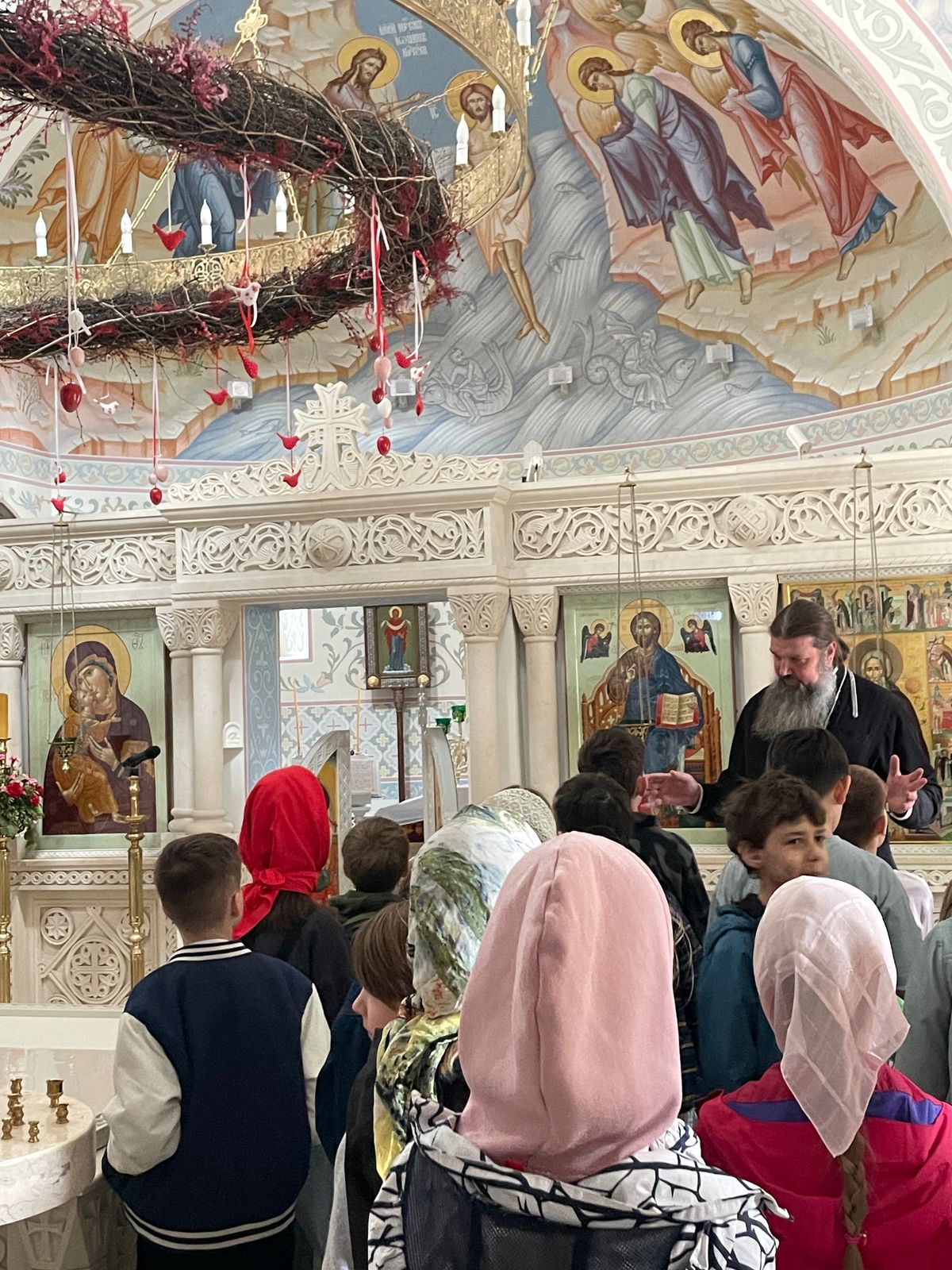 "Христос Воскресе!" - с этого чудесного возгласа началась встреча третьего и четвёртого класса Монтесолнечной системы школы № 504 с настоятелем храма.