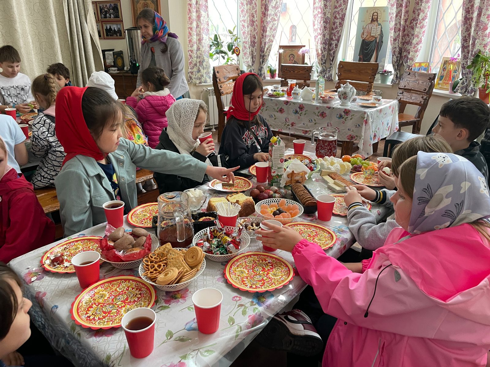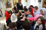 Завершилась экскурсия чаепитием в здании Воскресной школы, где всех ждало щедрое угощение - куличи и другие сладости, и, конечно, без подарков дети тоже не остались.