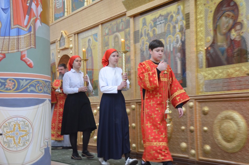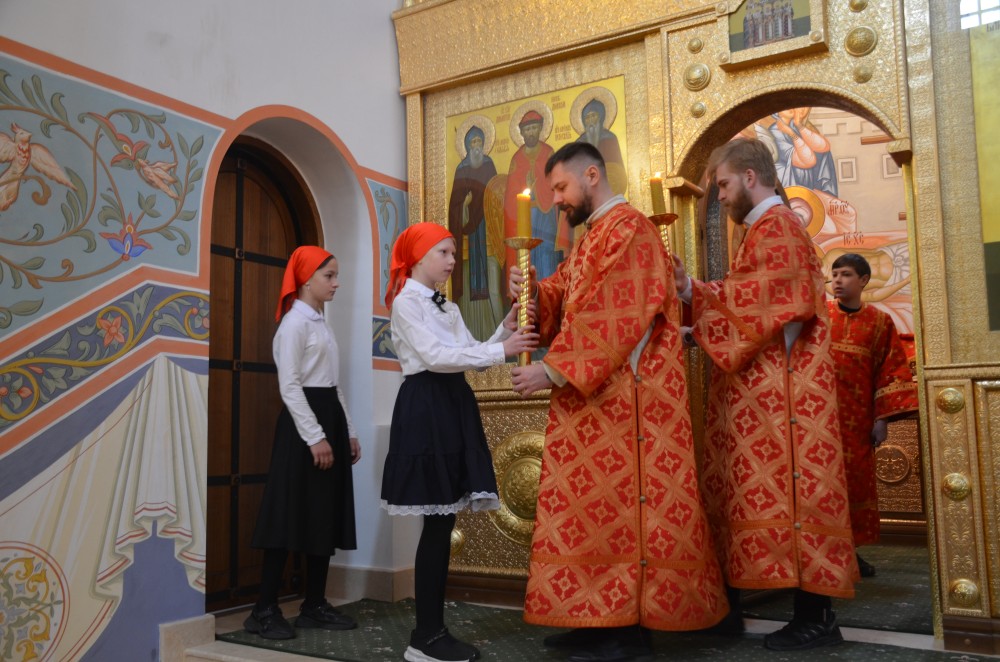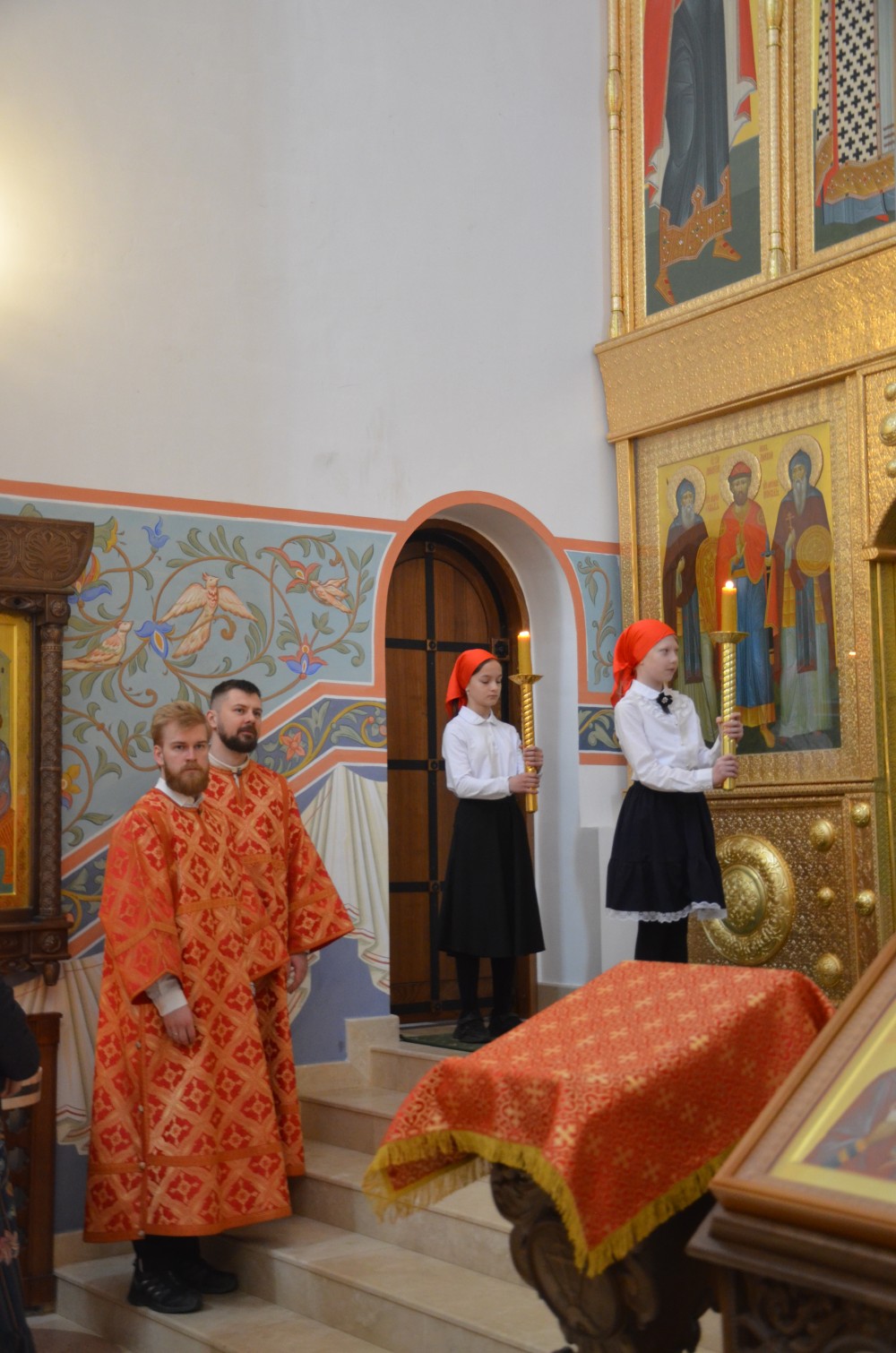 Особенностью данного Богослужения стало участие воспитанниц Воскресной школы "Исток" и прихожанок храма Священномученика Ермогена, Патриарха Московского и всея Руси, чудотворца, в Зюзине.