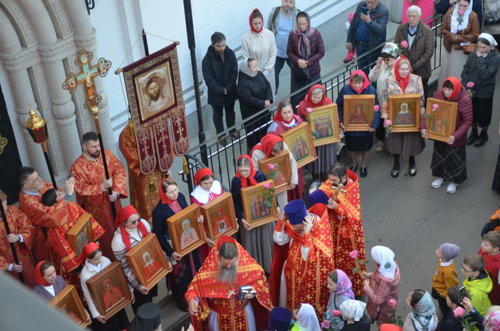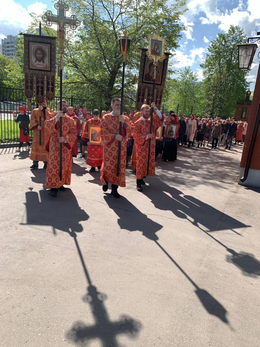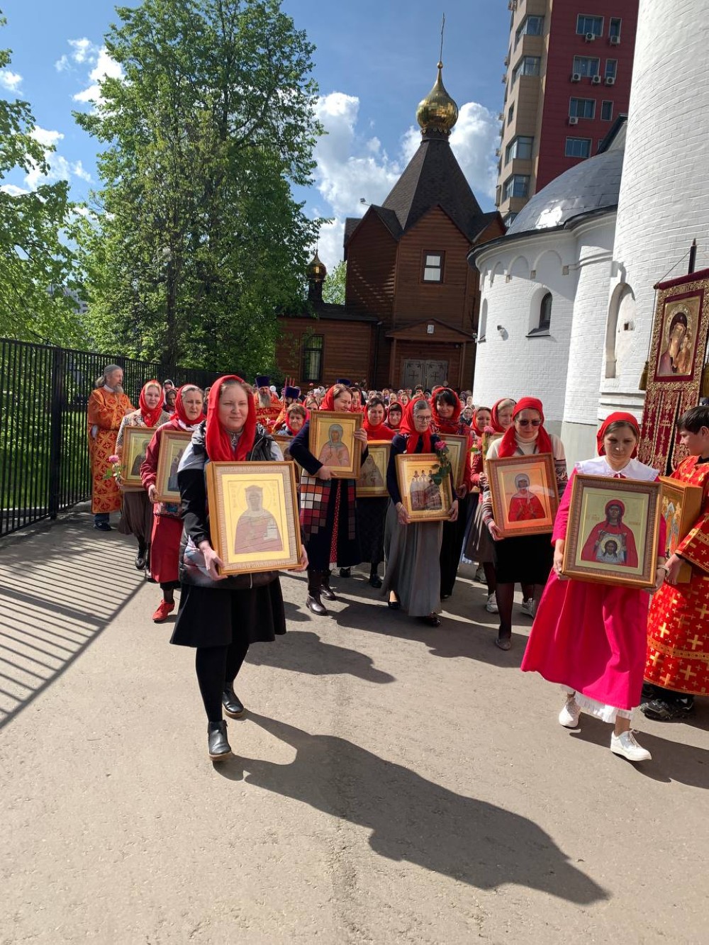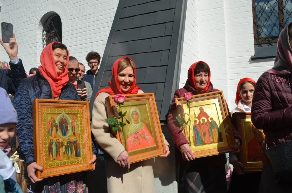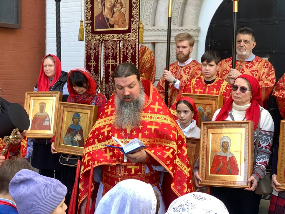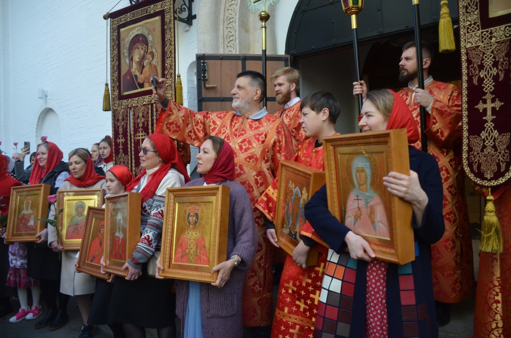 В завершение состоялся торжественный Крестный ход с участием прихожанок храма, которые несли в руках цветы и иконы с ликами святых жен.