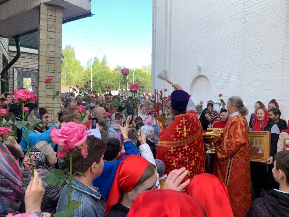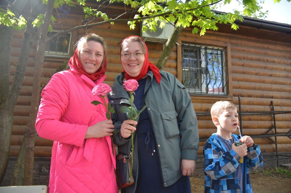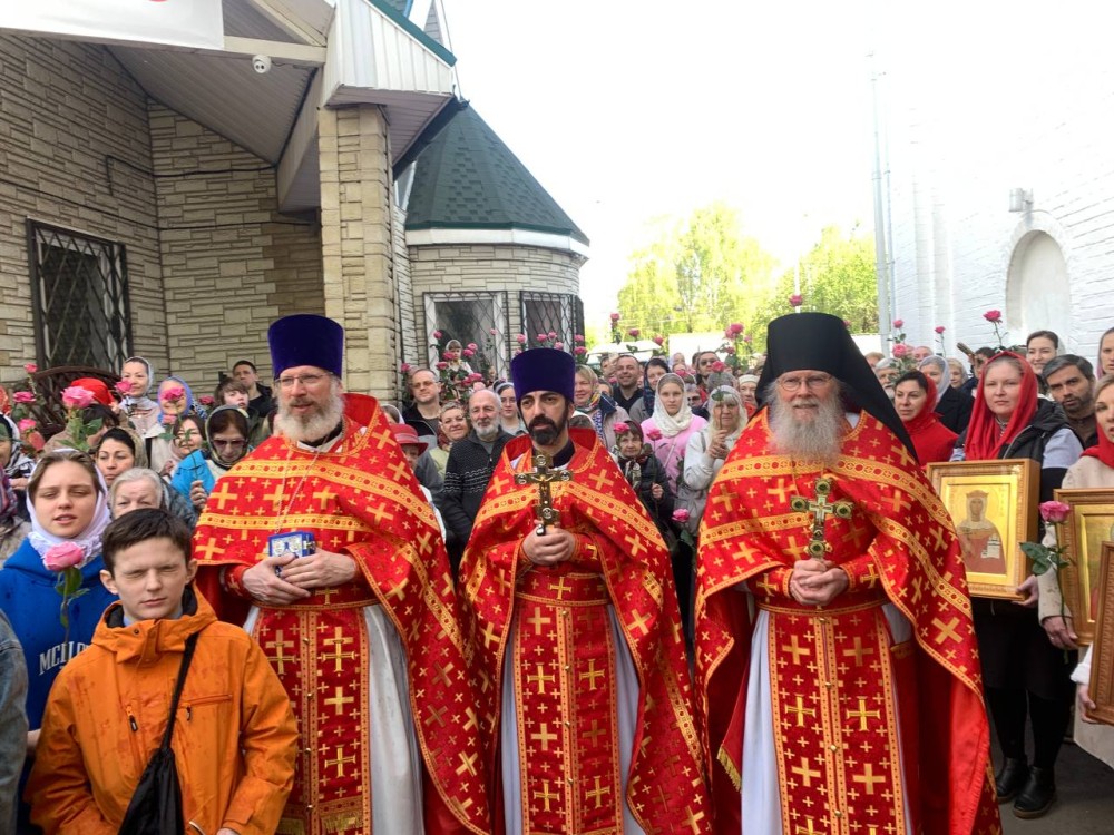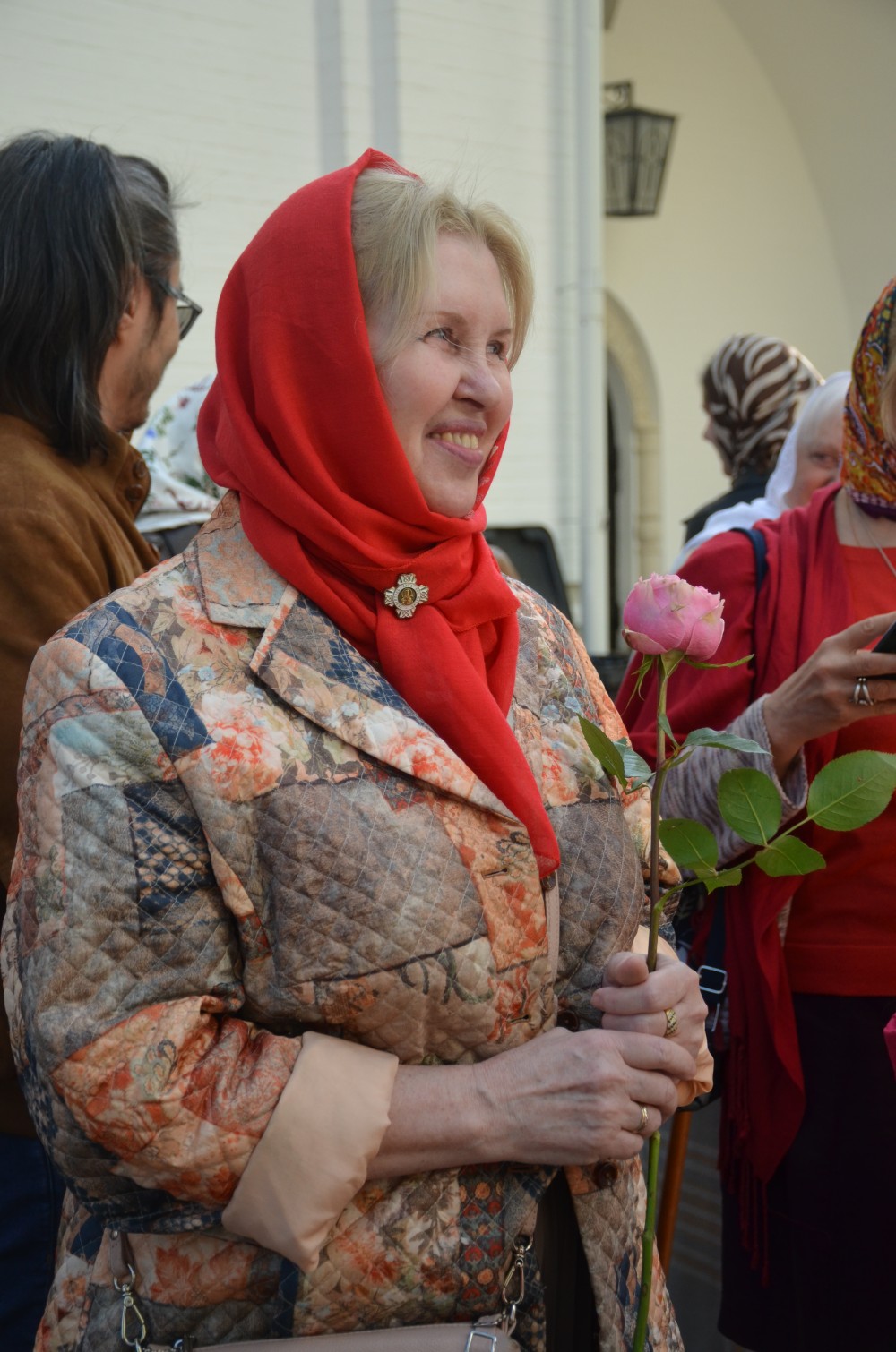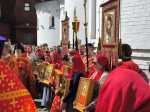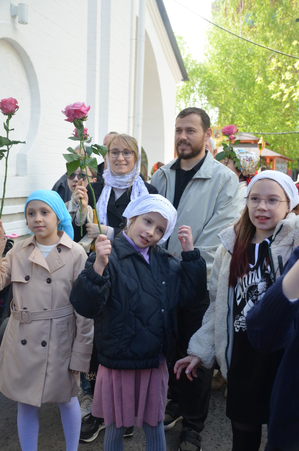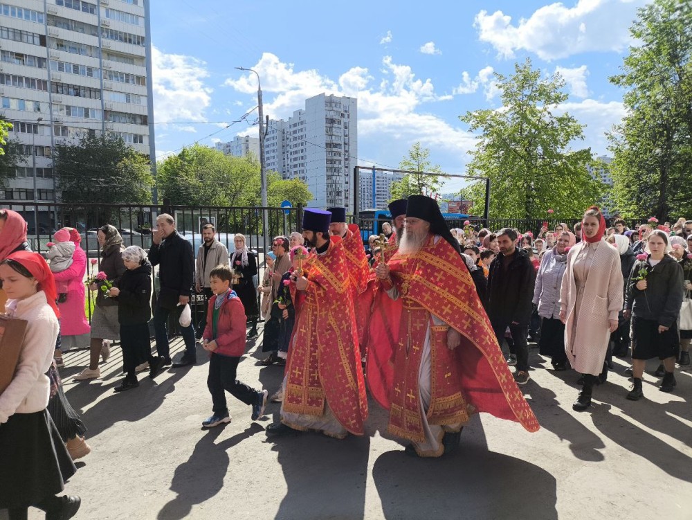 В завершение состоялся торжественный Крестный ход с участием прихожанок храма, которые несли в руках цветы и иконы с ликами святых жен.
