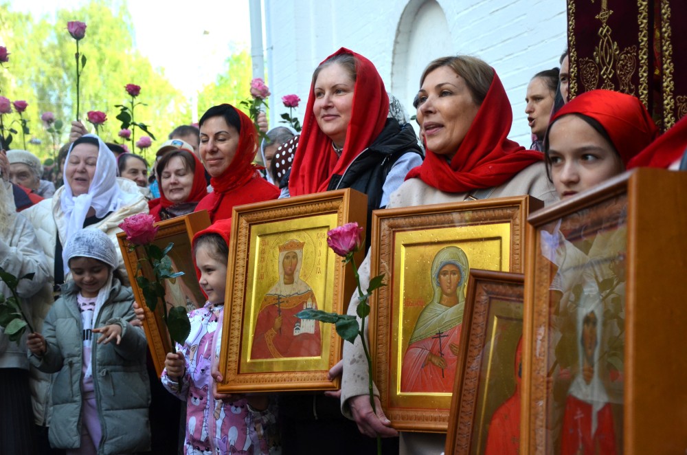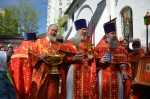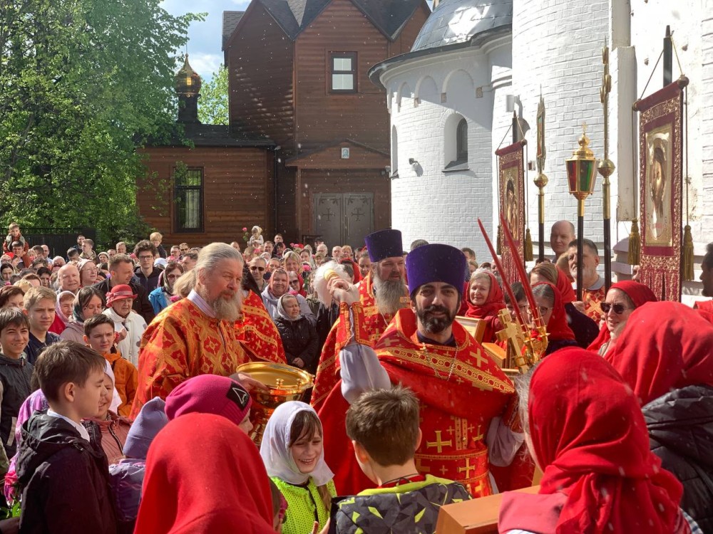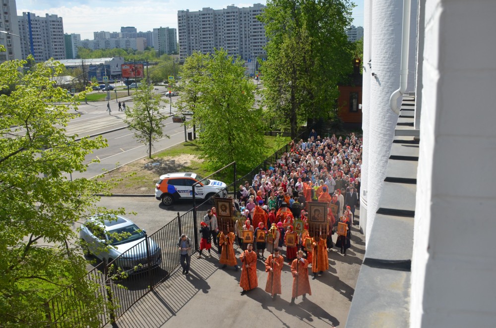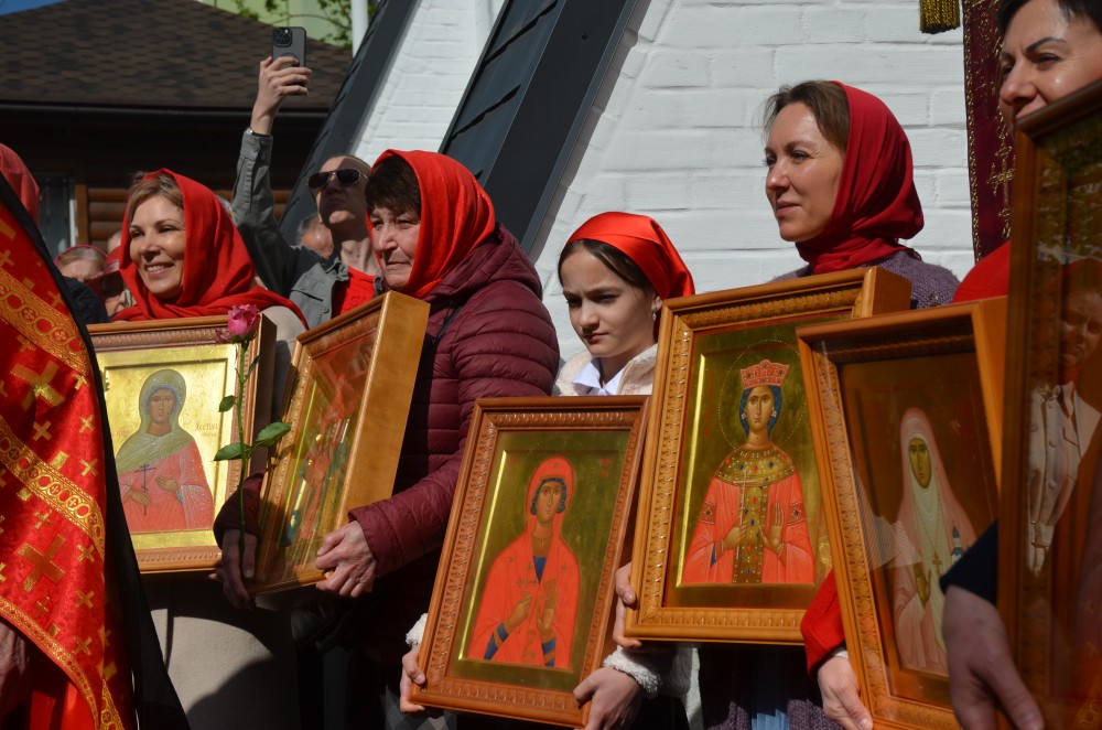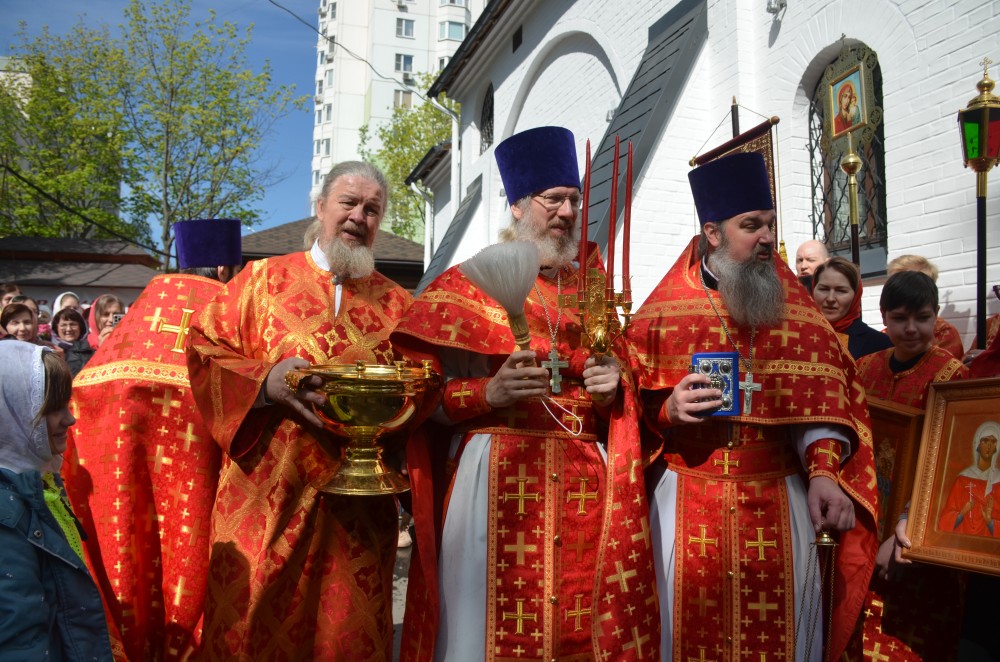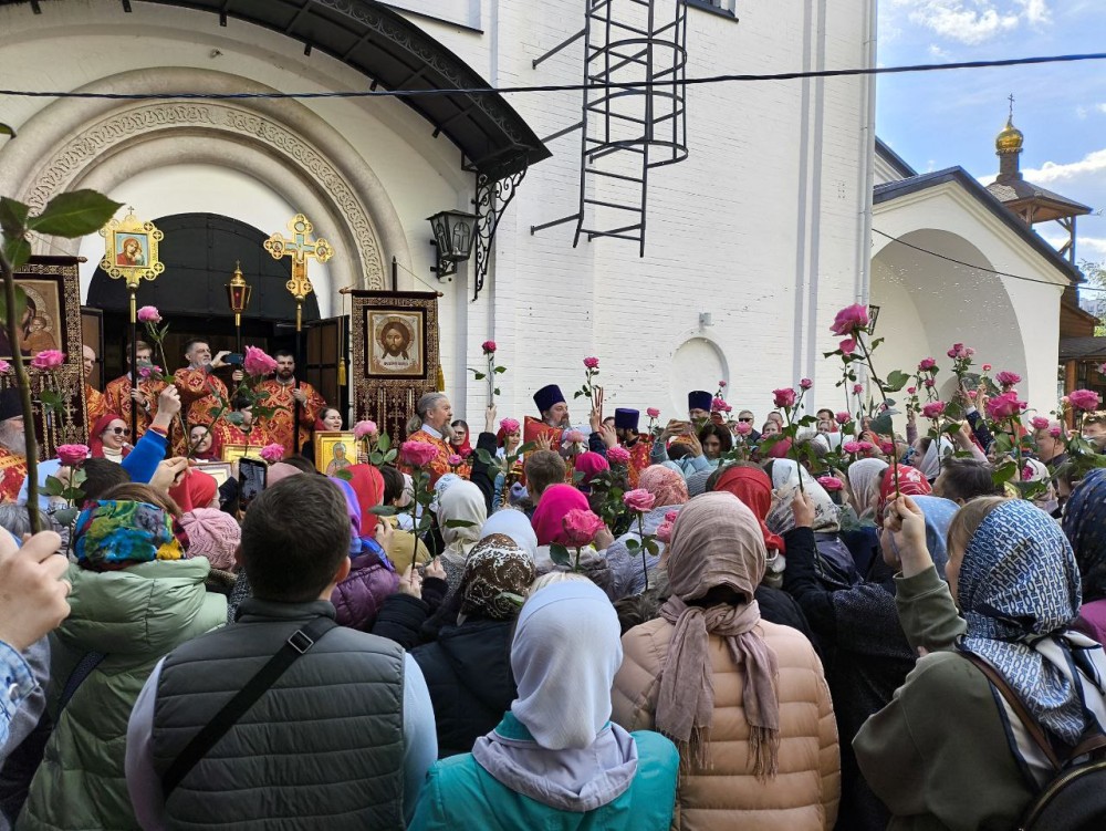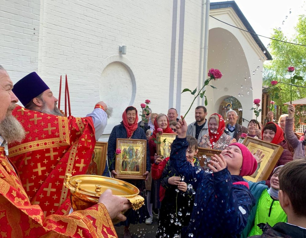 В завершение состоялся торжественный Крестный ход с участием прихожанок храма, которые несли в руках цветы и иконы с ликами святых жен.