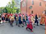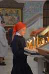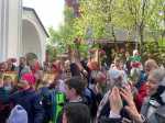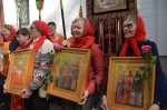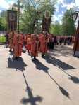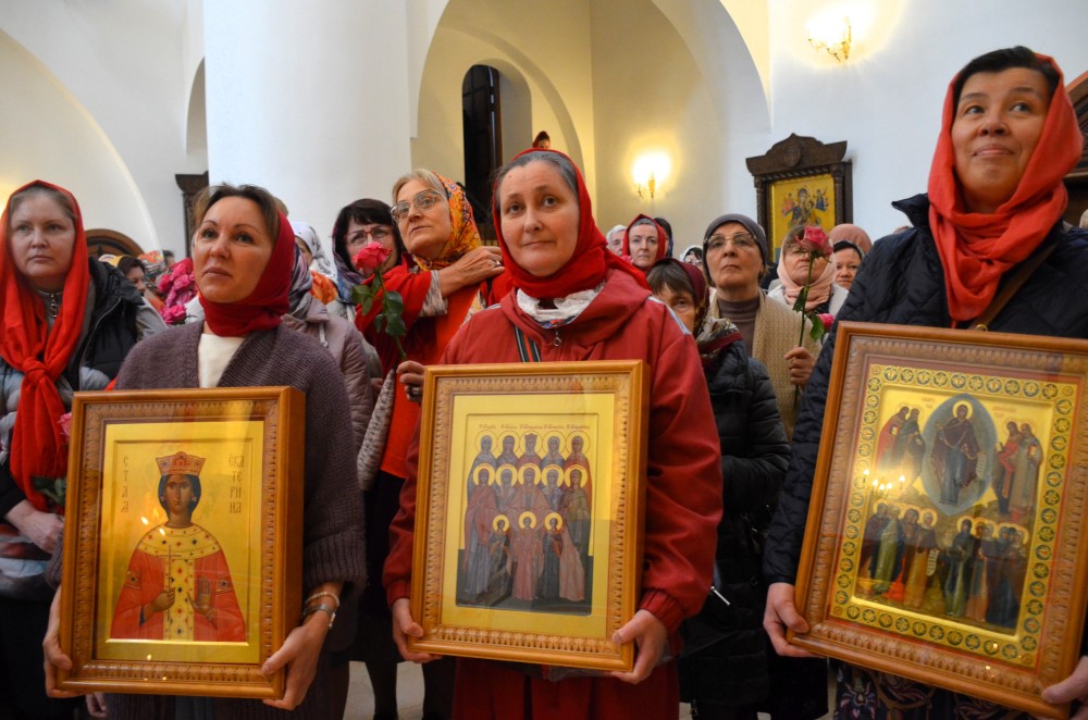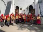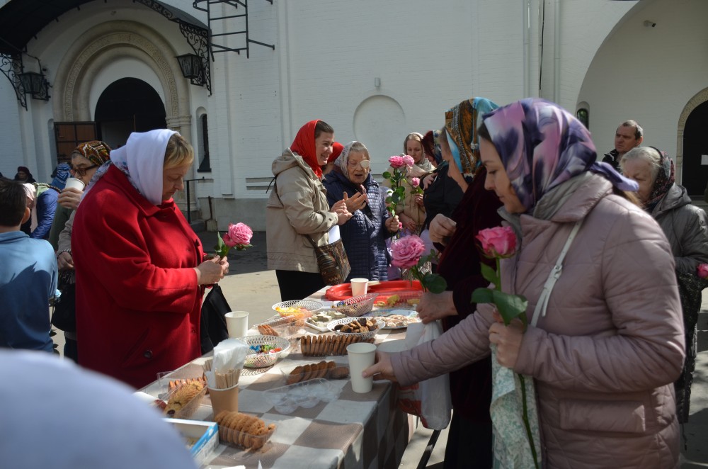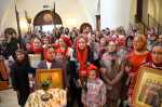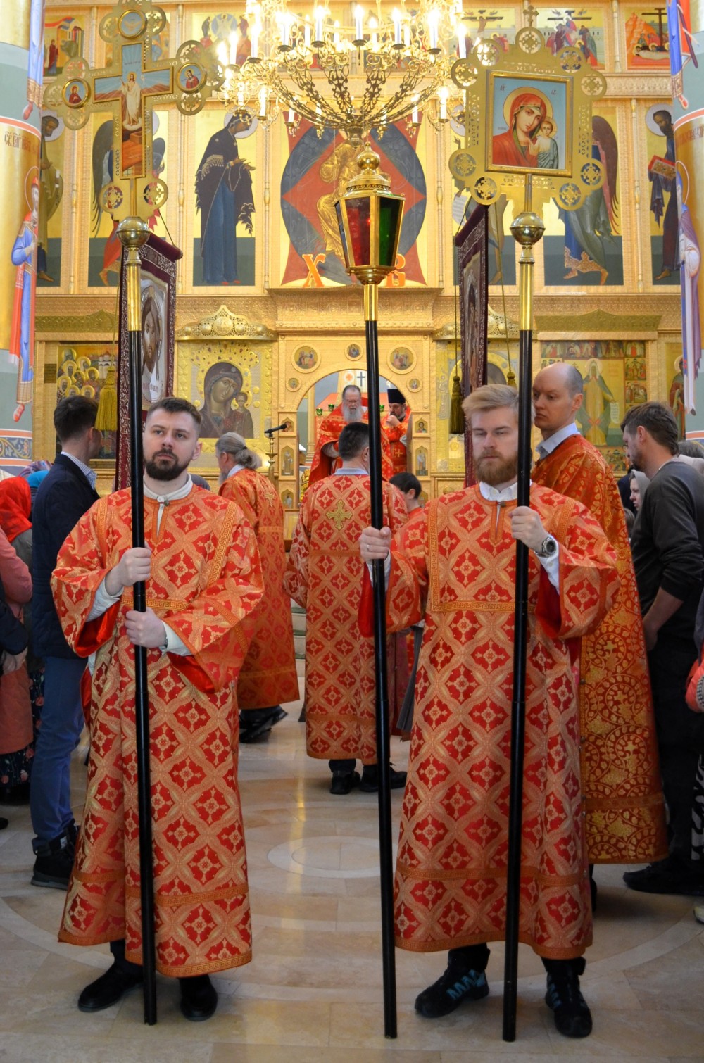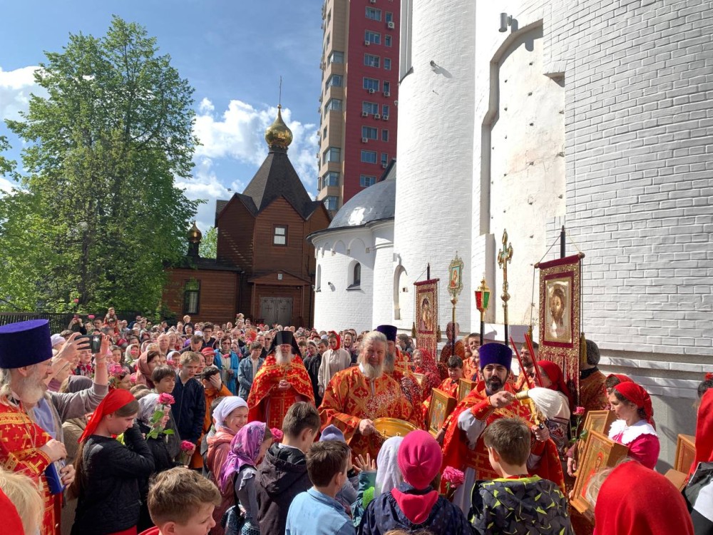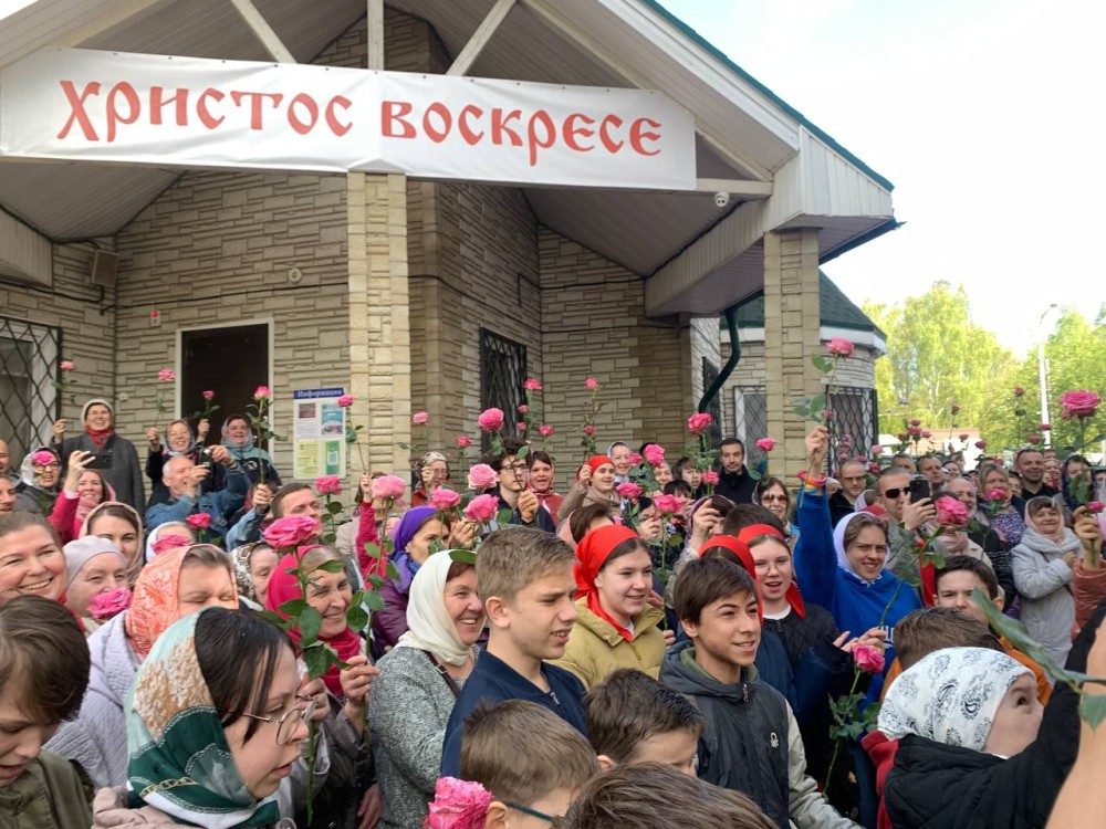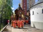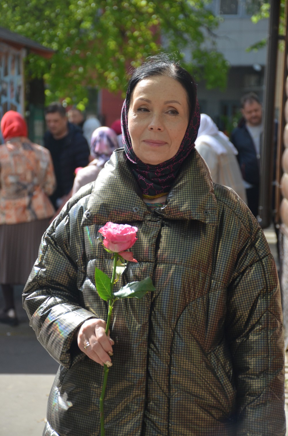 В завершение состоялся торжественный Крестный ход с участием прихожанок храма, которые несли в руках цветы и иконы с ликами святых жен.