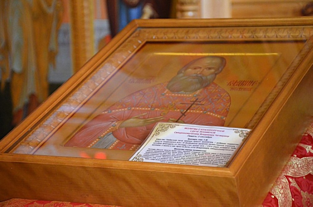Для духовной поддержки и молитвенного поклонения в период сдачи экзаменов в храм изнесена алтарная икона священномученика Владимира Четверина, который является покровителем учащих и учащихся.
