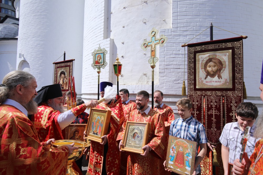После торжественных поздравлений состоялся Крестный ход с участием прихожан храма в сопровождении колокольного звона.
