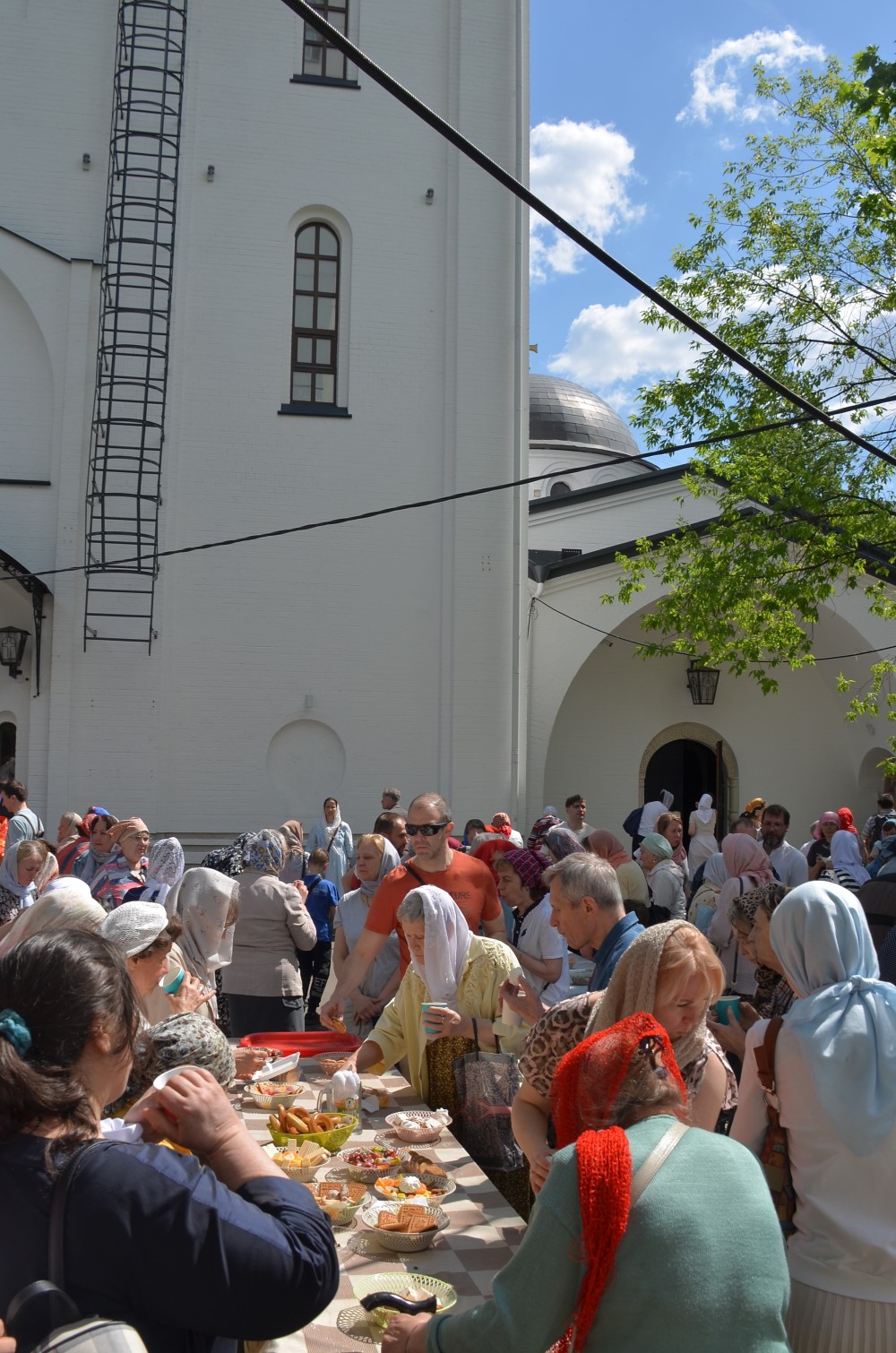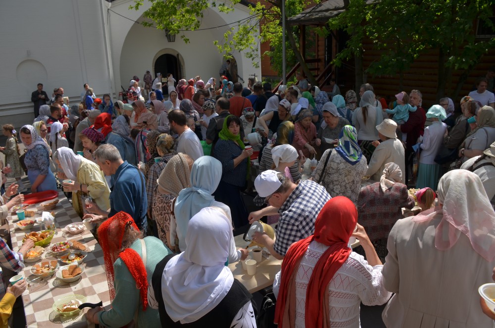 В завершение на подворье было организовано праздничное угощение, приготовленное на полевой кухне, а также ароматный чай со сладостями.