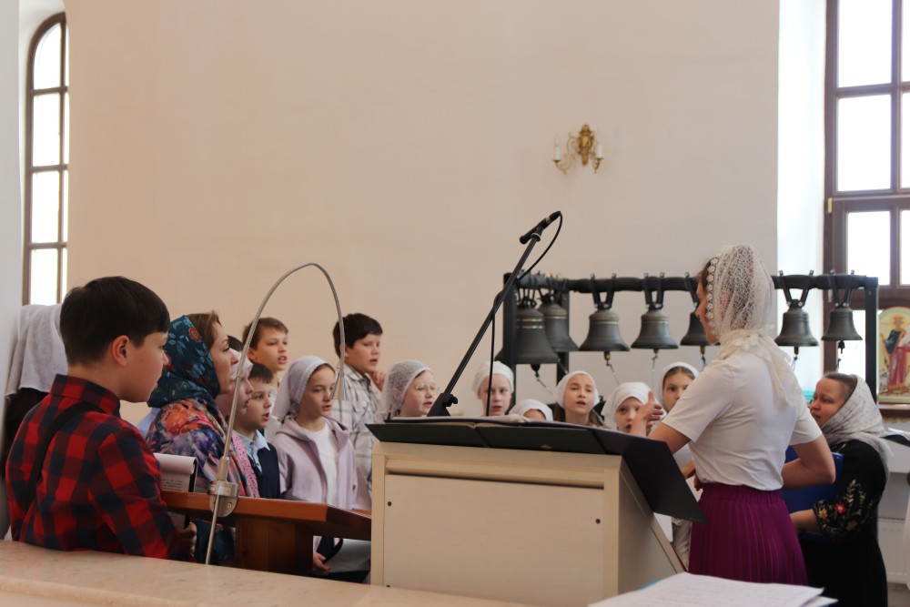 Особенностью Божественной Литургии, отслуженной по Пасхальному чину, стало то, что в ней принял участие детский хор Воскресной школы храма "Исток" под руководством регента храма Виктории Куликовой и Народный хор под управлением педагога и регента Татьяны Орловой.