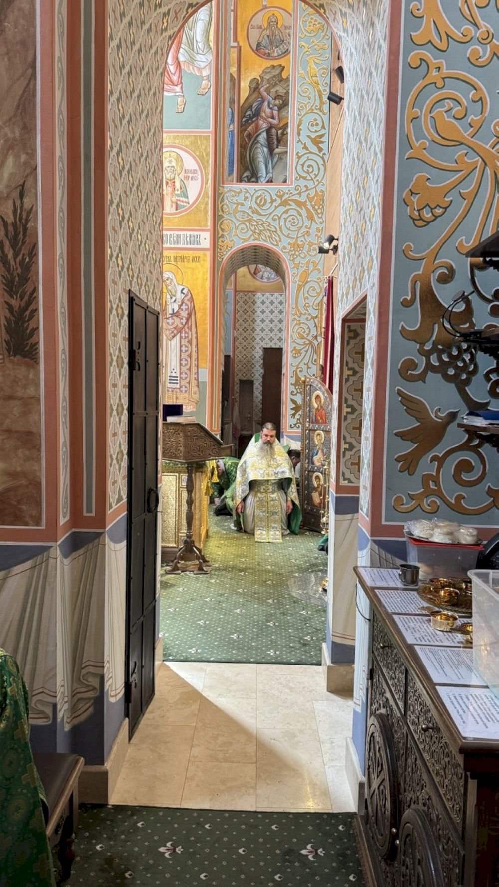 По окончании Божественной Литургии совершена Великая вечерня с чтением коленопреклонных молитв.