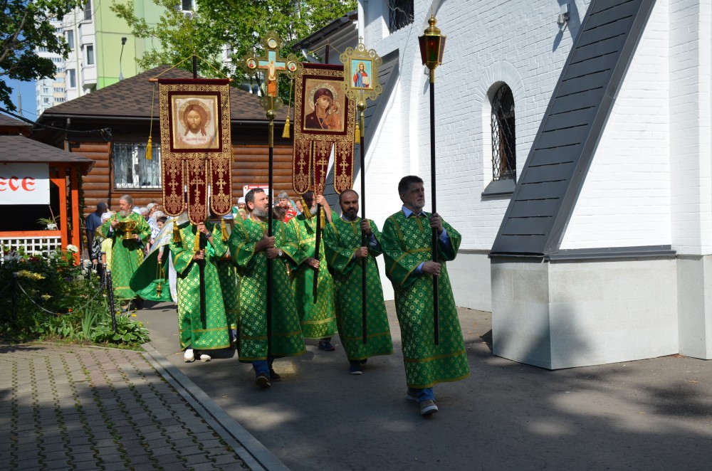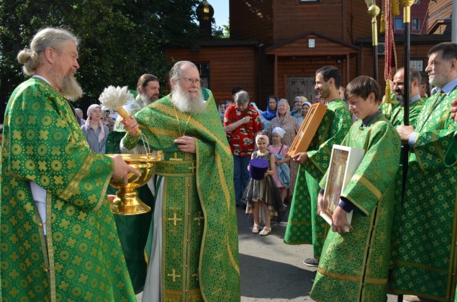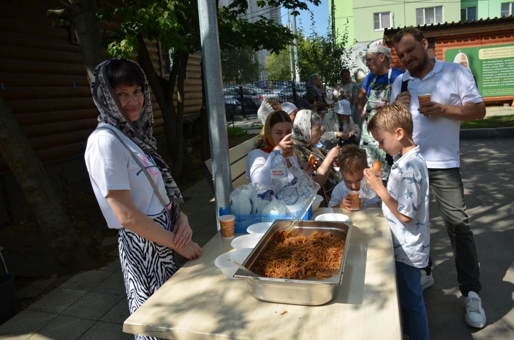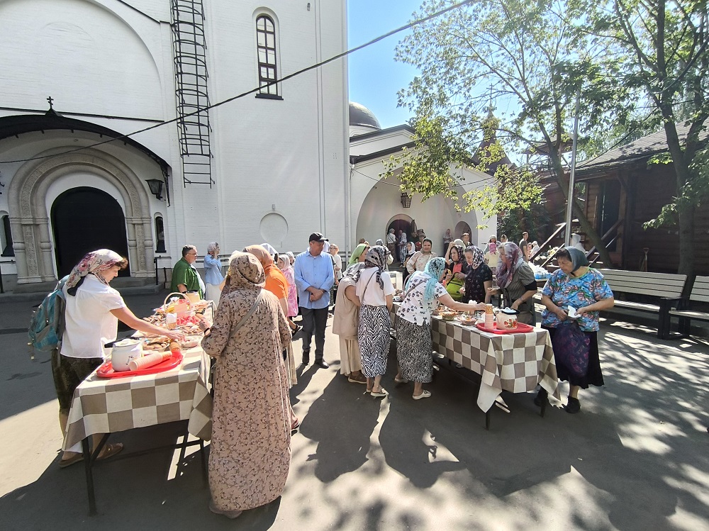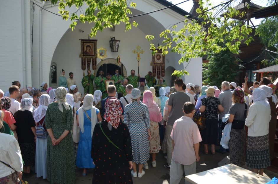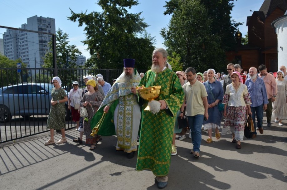 По окончании Божественной Литургии совершен Крестный ход, после которого настоятель храма иерей Иоанн Омелянчук обратился к прихожанам с проповедью, а в завершение поздравил именинников со святыми именинами, после чего слова поздравления прозвучали в адрес настоятеля по случаю его дня рождения. Праздничные мероприятия продолжились на храмовой территории, где всех ждало угощение - гречневая каша, приготовленная на полевой кухне, и ароматный чай со сладостями.