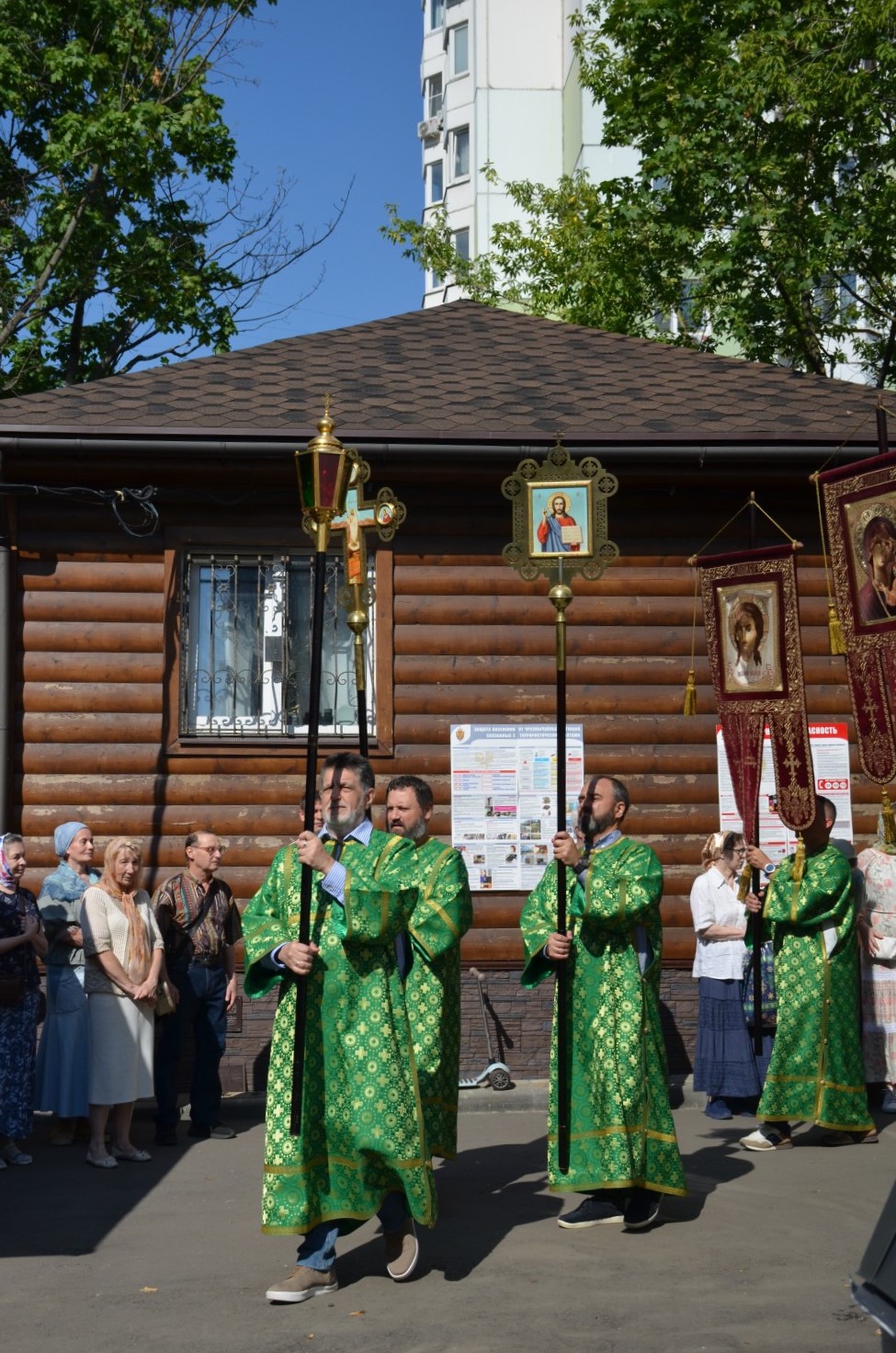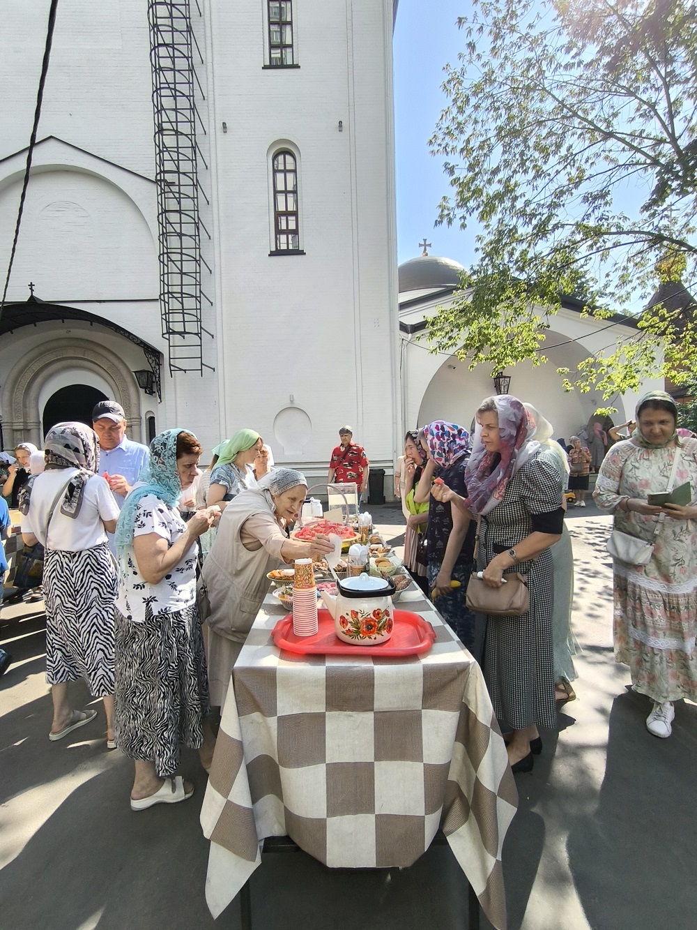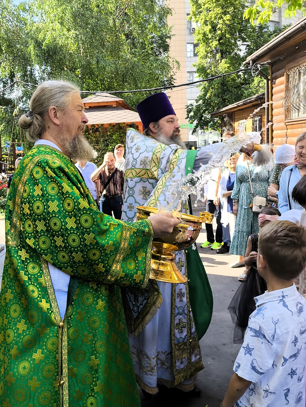 По окончании Божественной Литургии совершен Крестный ход, после которого настоятель храма иерей Иоанн Омелянчук обратился к прихожанам с проповедью, а в завершение поздравил именинников со святыми именинами, после чего слова поздравления прозвучали в адрес настоятеля по случаю его дня рождения. Праздничные мероприятия продолжились на храмовой территории, где всех ждало угощение - гречневая каша, приготовленная на полевой кухне, и ароматный чай со сладостями.