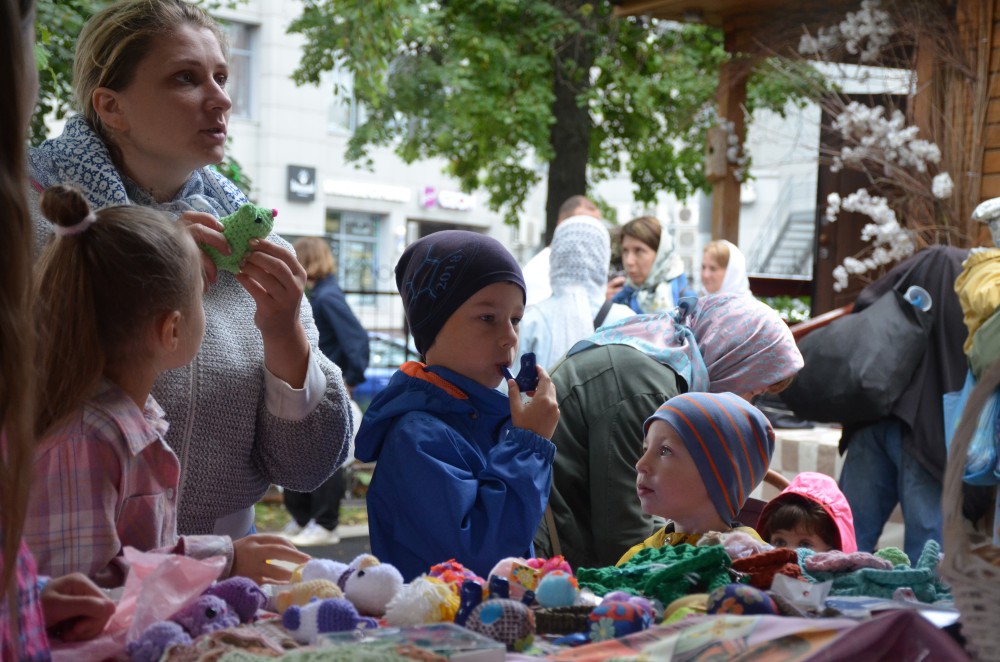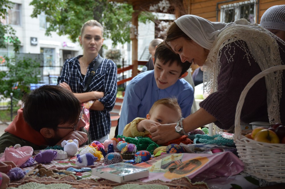 Также для прихожан и гостей храма организована благотворительная ярмарка, где представлены поделки и сувниры ручной работы, а также изделия из керамики.