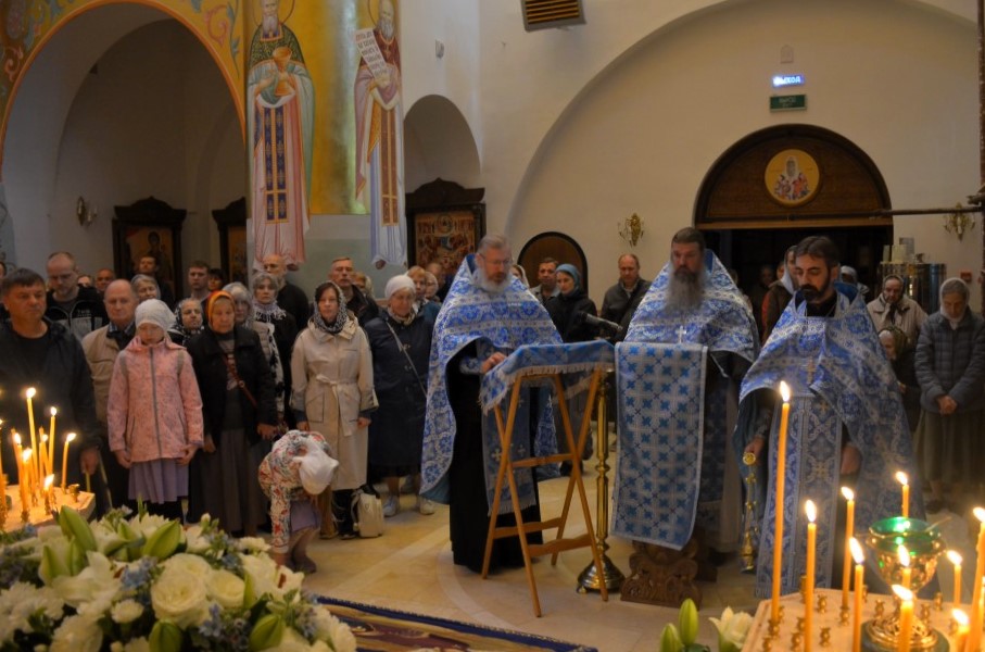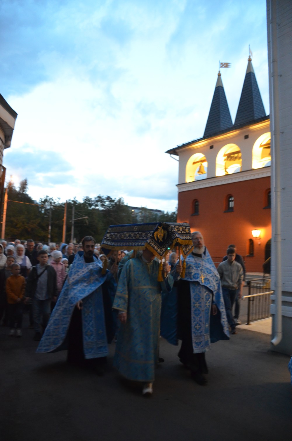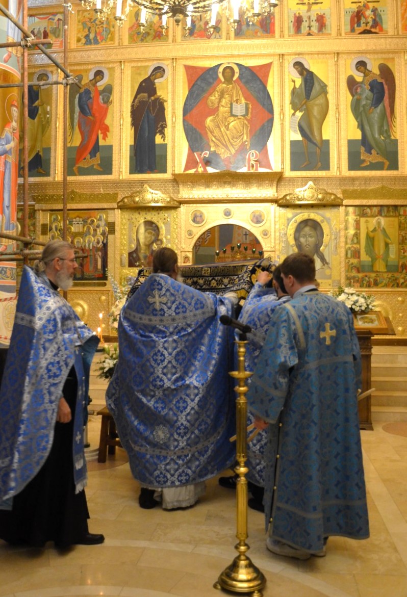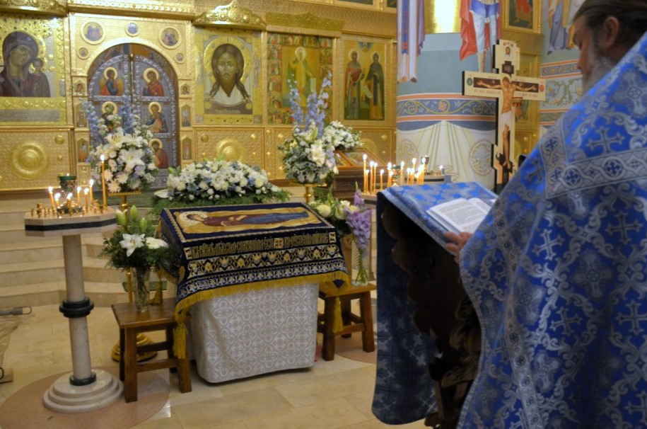 Вечером в день праздника, на Всенощном бдении, в храме Священномученика Ермогена Патриарха Московского и всея Руси, чудотворца, в Зюзине, совершен чин Погребения Пресвятой Богородицы с последующим Крестным ходом вокруг основного храма. Богослужение совершил настоятель храма иерей Иоанн Омелянчук в сослужении духовенства храма.