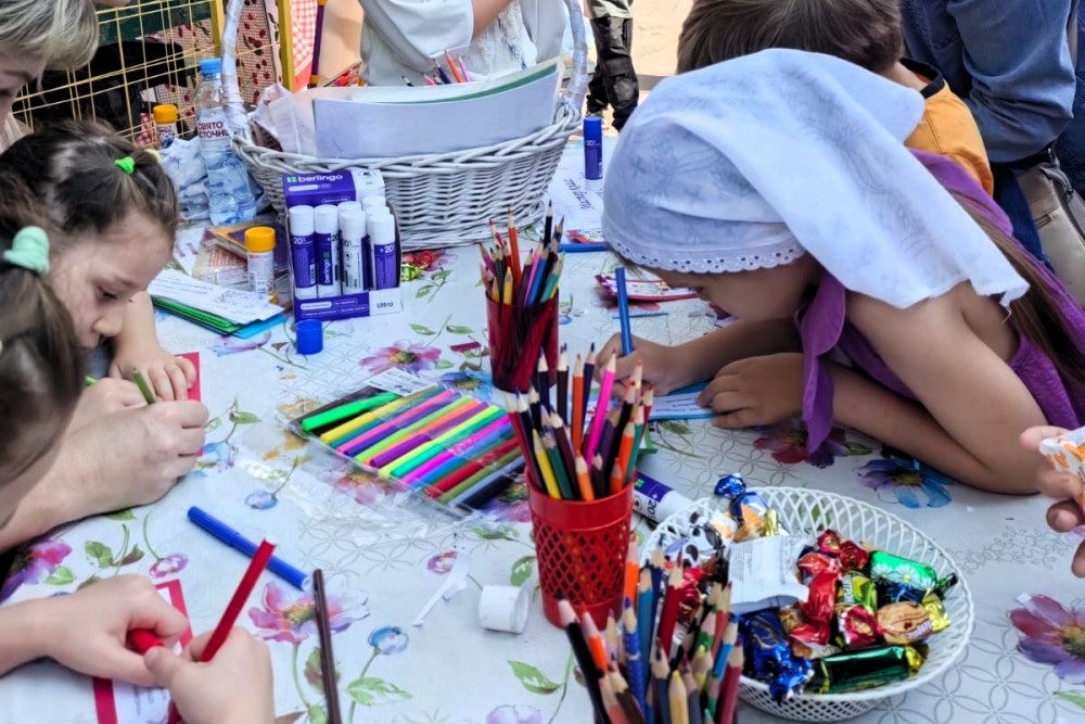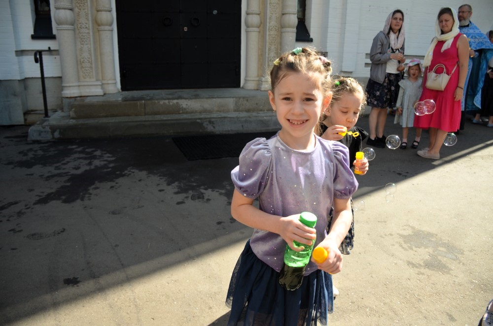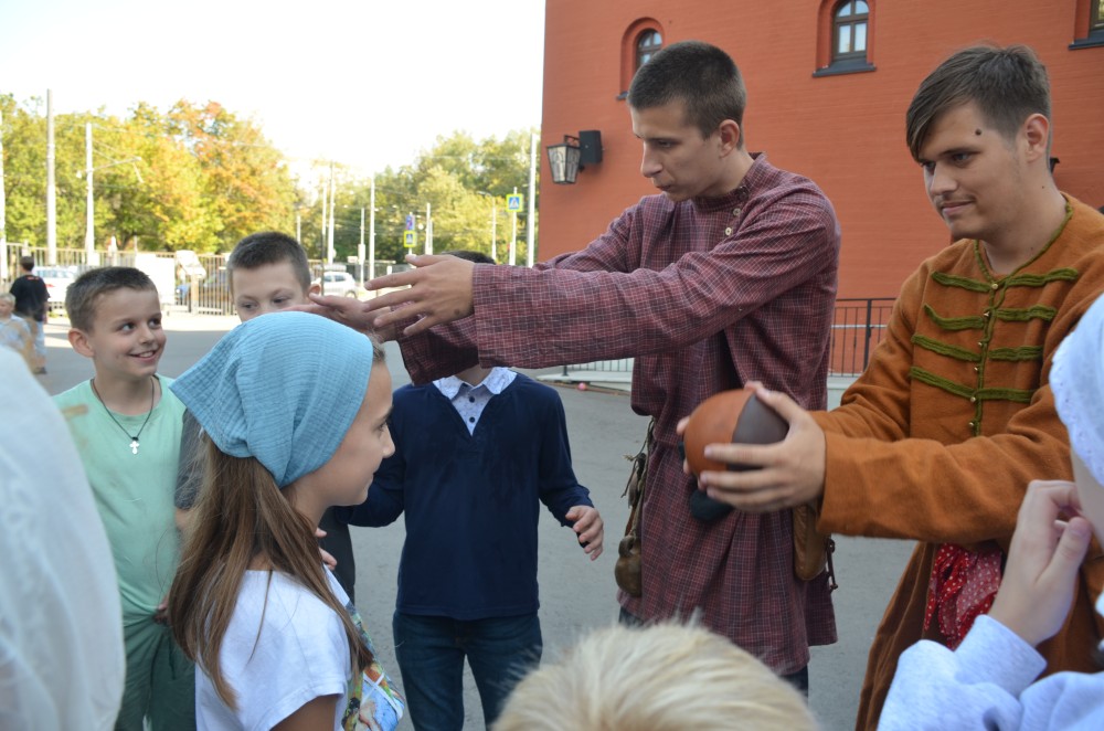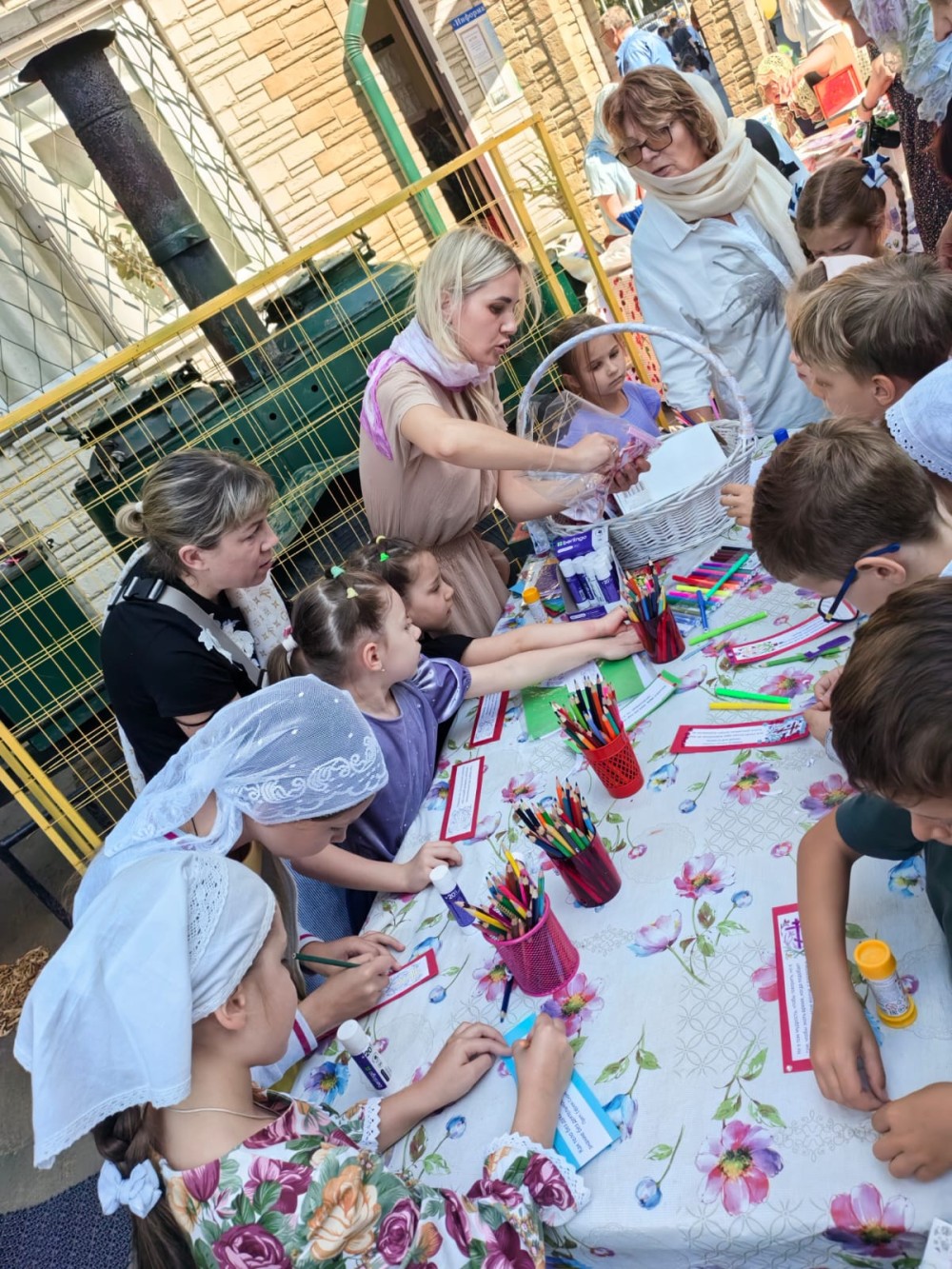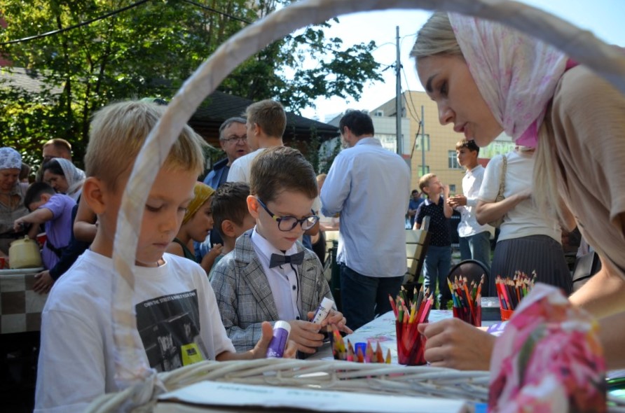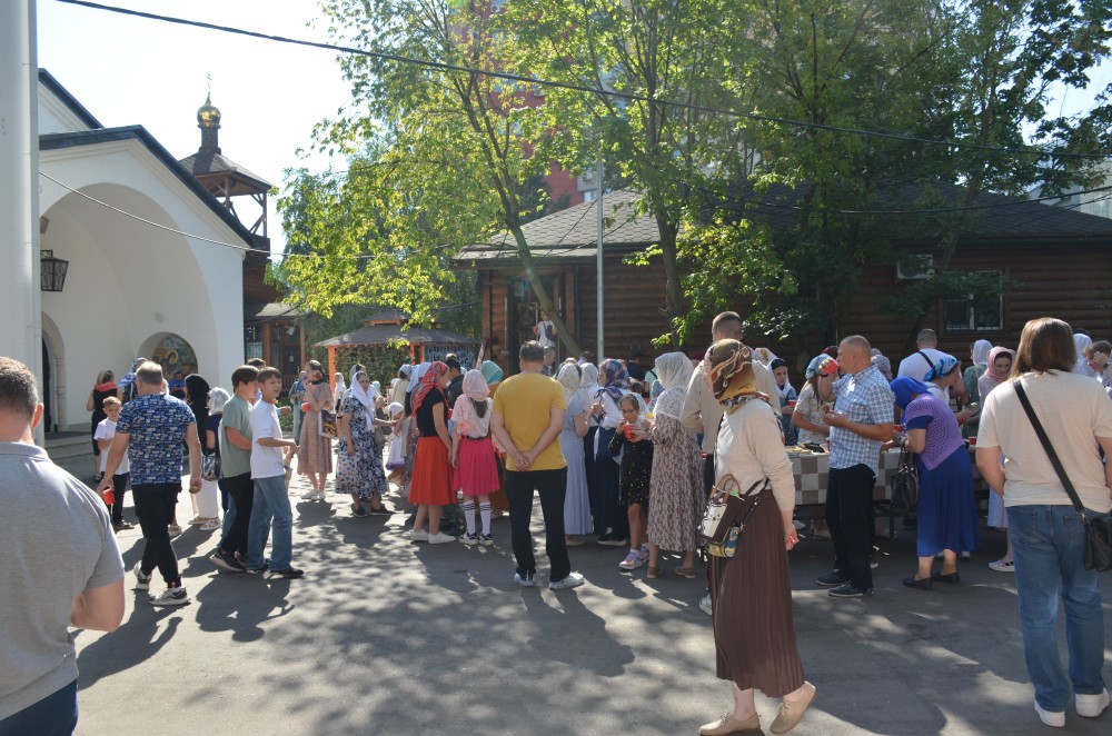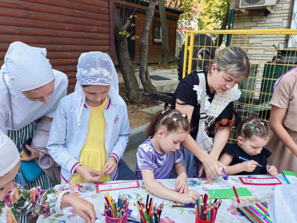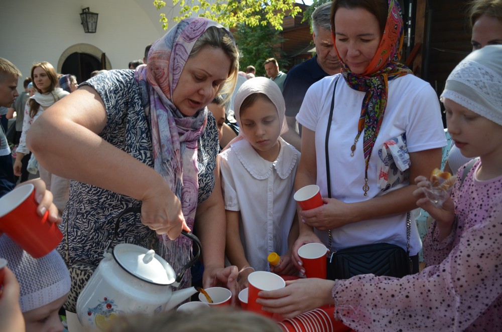 В продолжение праздника для всех прихожан и гостей на прихрамовой территории было организовано чаепитие с бутербродами и ароматным чаем со сладостями, а также творческая мастерская по изготовлению полезных закладок для книг, с цитатами из Священного Писания о пользе учения, в которой приняли участие дети Воскресной школы и гости праздника.