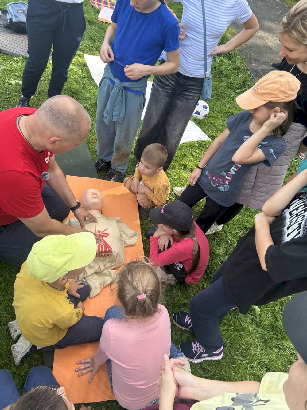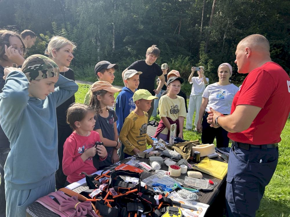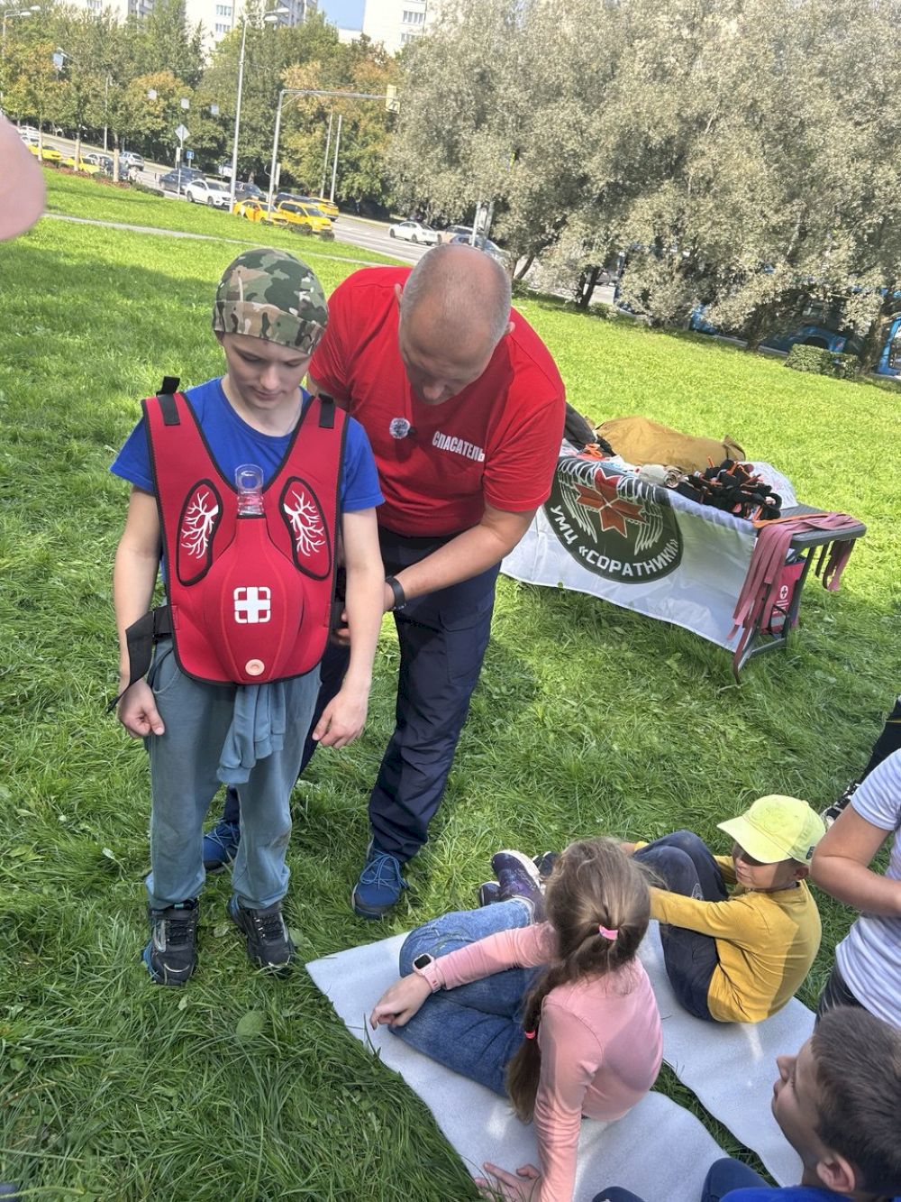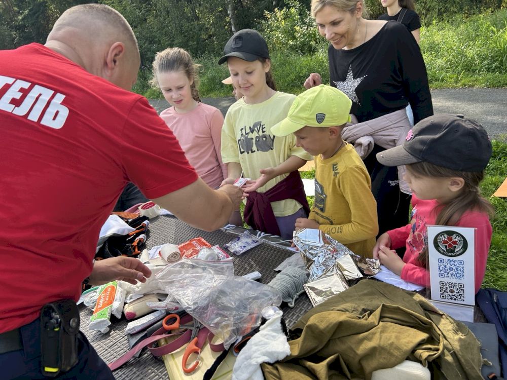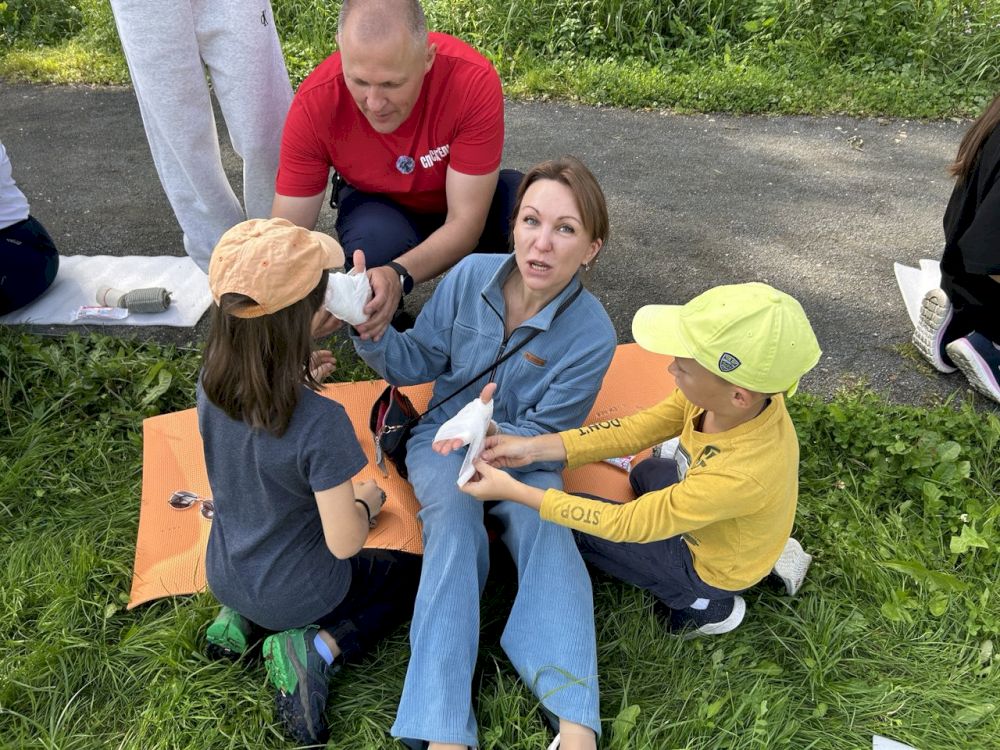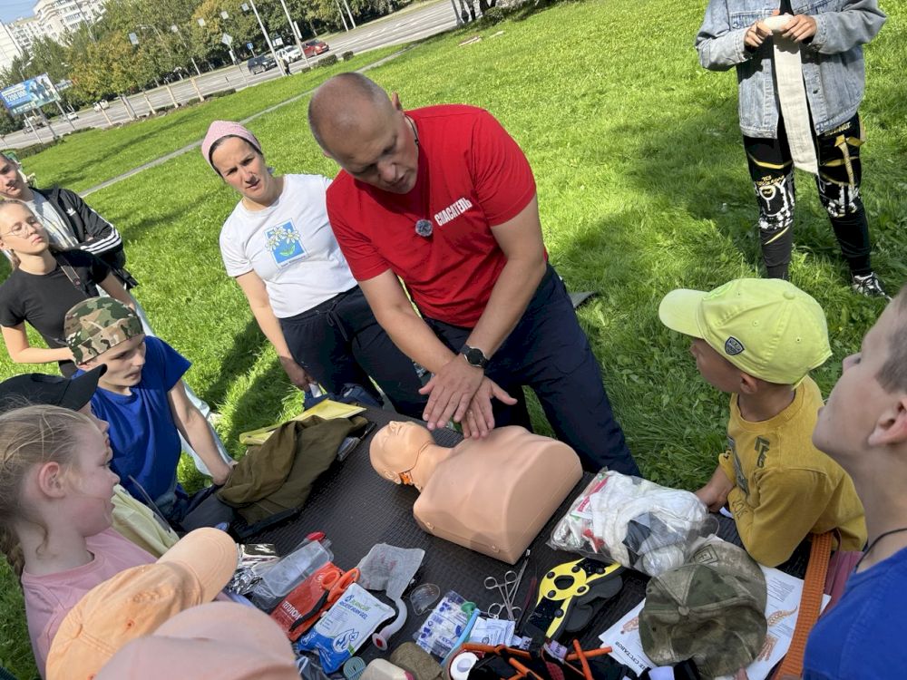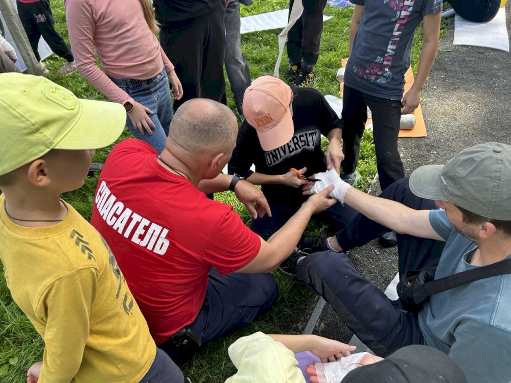 В преддверии учебного года ребята рады были увидеться друг с другом и полезно провести время. Вячеслав Евгеньевич подробно рассказывал и показывал, какие действия должны быть в разных чрезвычайных ситуациях: при порезах, травмах, потере сознания и других непредвиденных случаях.