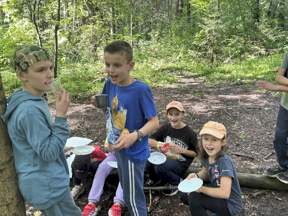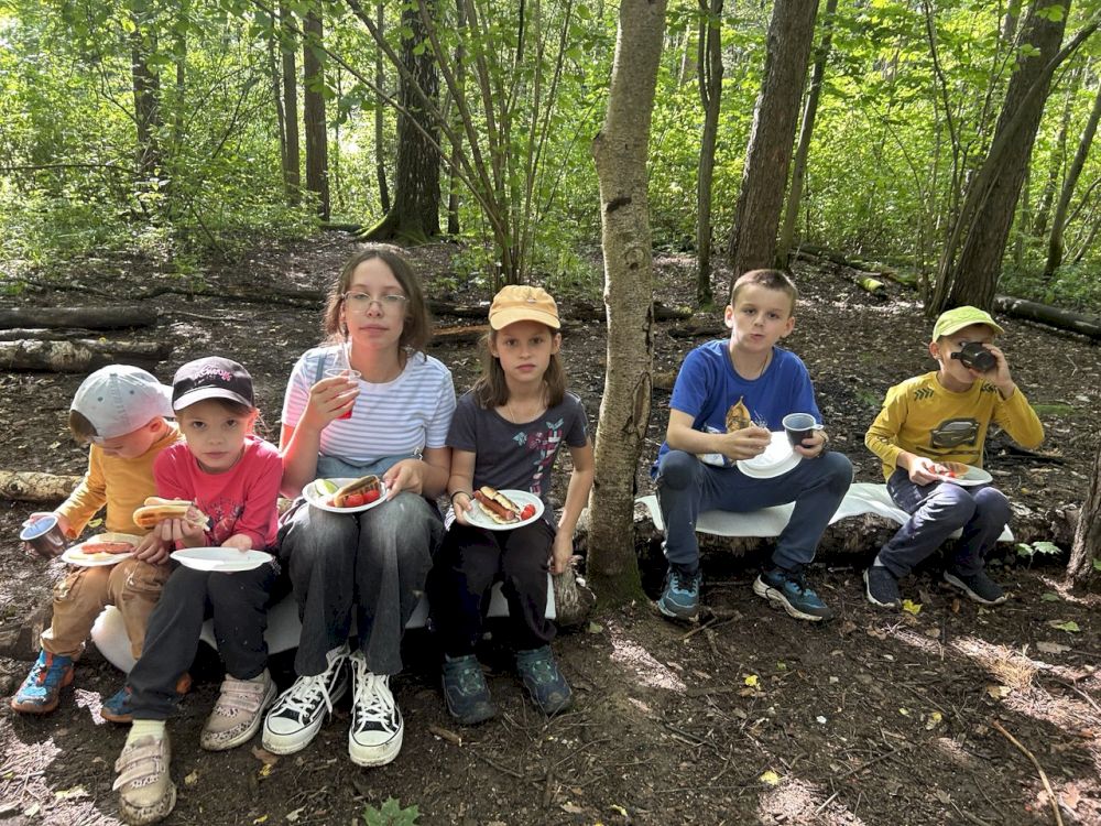 После учений ребята играли на свежем воздухе, а затем все отправились в лес на пикник после активной деятельности.