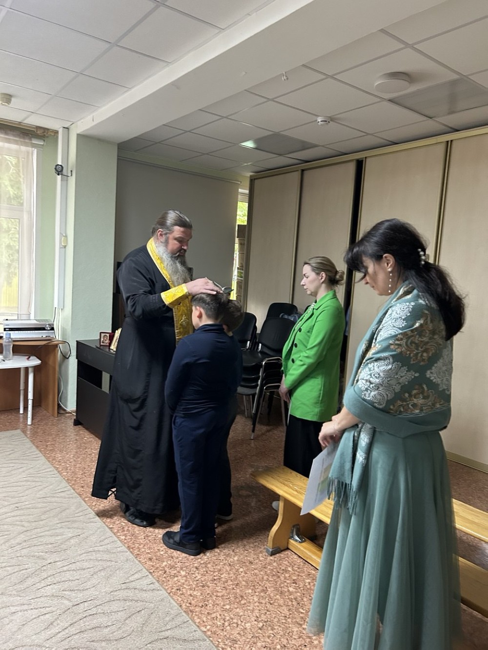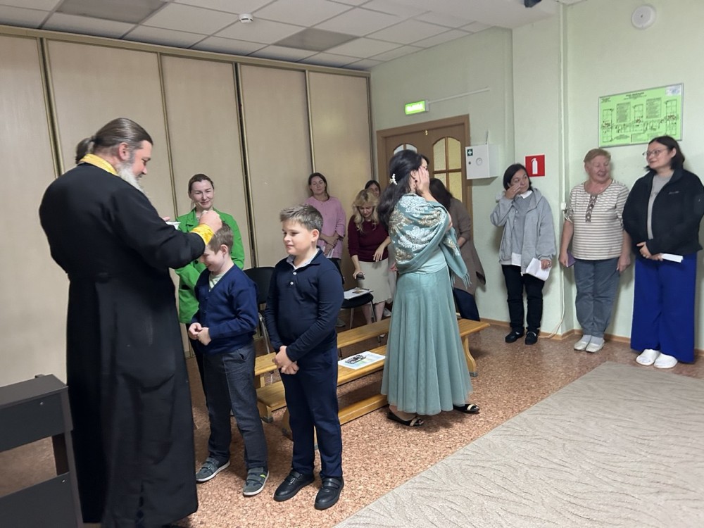 Иерей Иоанн отслужил молебен об учащих и учащихся на начало учебного года, благословил педагогов и детей, окропил собравшихся святой водой.