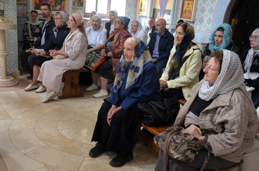 По окончании Воскресной Божественной Литургии для всех прихожан и гостей, пришедших на встречу и желающих пройти курс новоначальных в вере, состоялось первое занятие в крестильном приделе основного храма в честь преподобного Сергия Радонежского. Ознакомительная беседа была посвящена основам церковного этикета, затем иерей Иоанн ответил на вопросы участников курса.