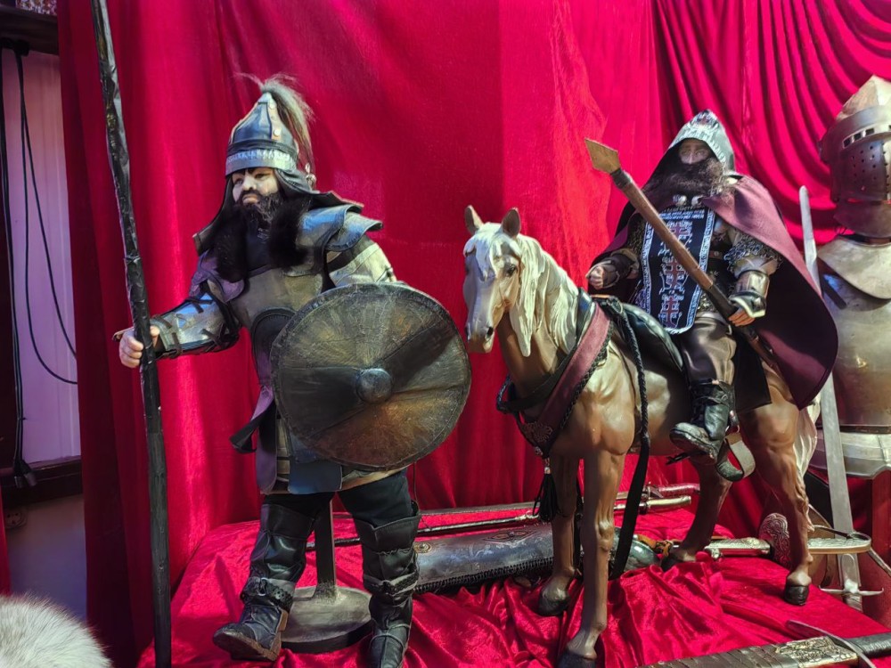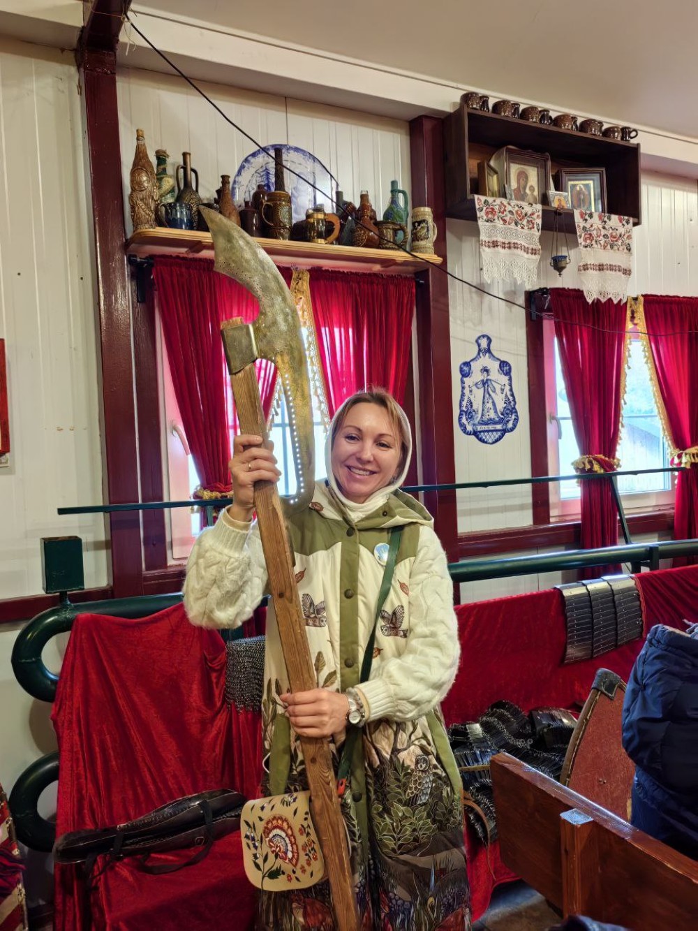 Все присутствующие могли подержать в руках и рассмотреть экспонаты музея - раритетные, старинные оружия: мечи, копья, топоры и луки.