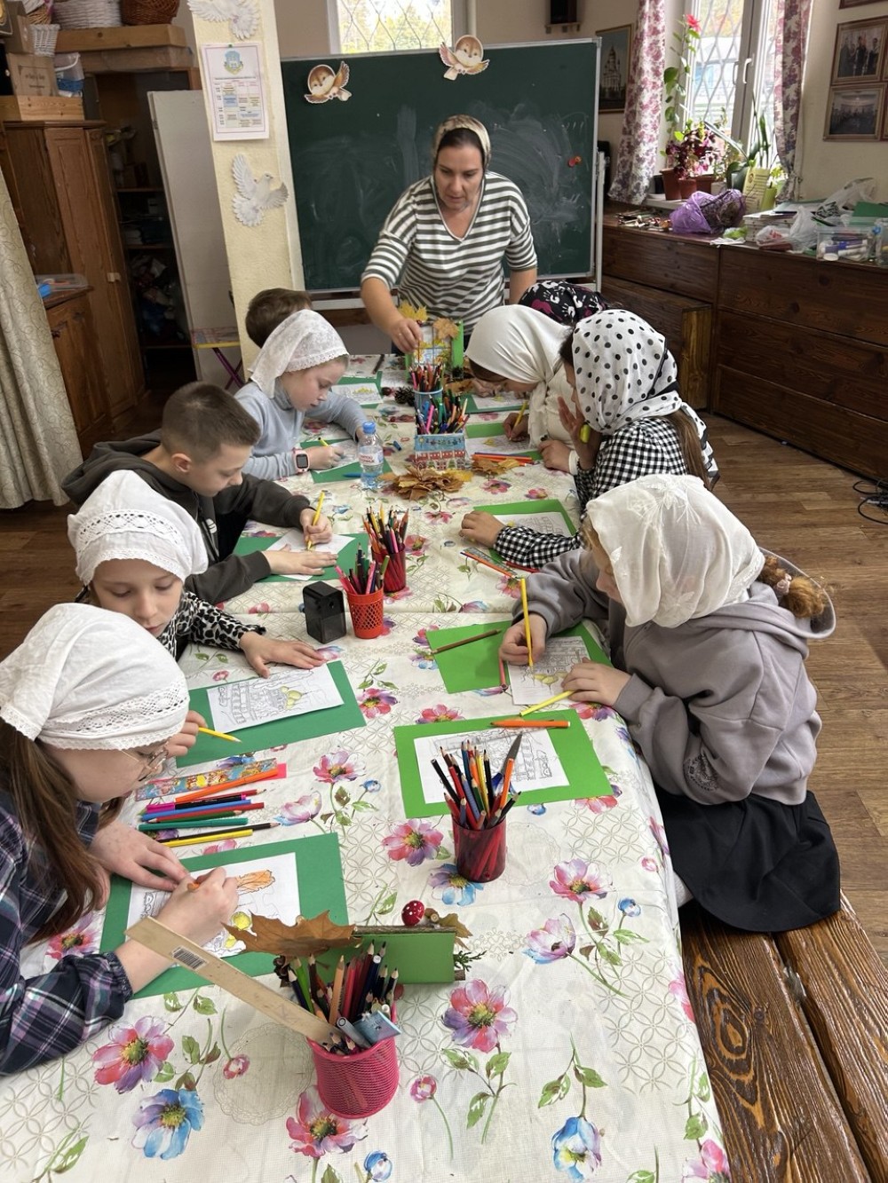 На занятиях по хоровому пению дети учатся петь слаженно, разучивают распевы Литургии и детские песни.