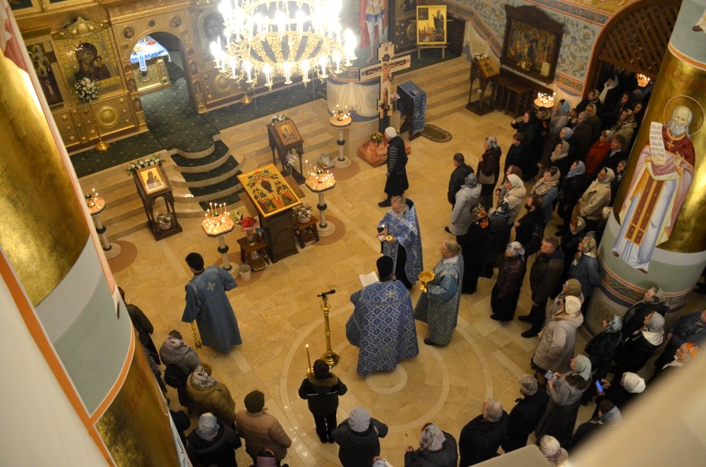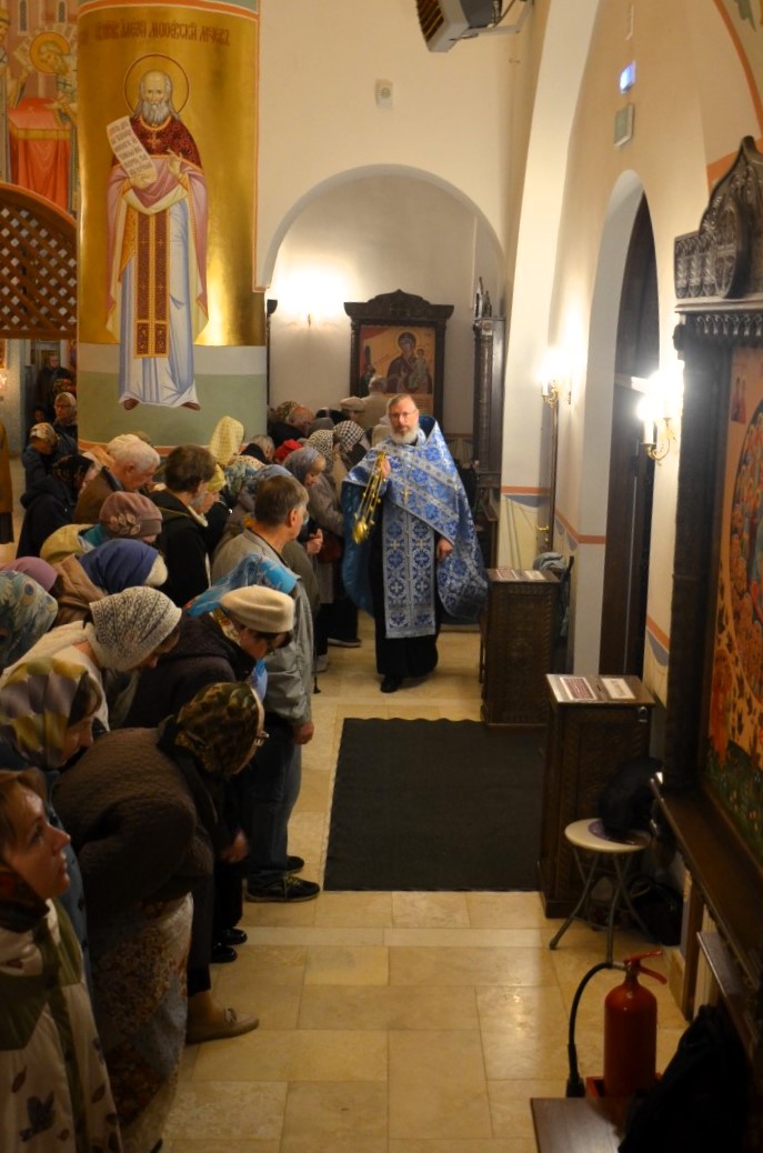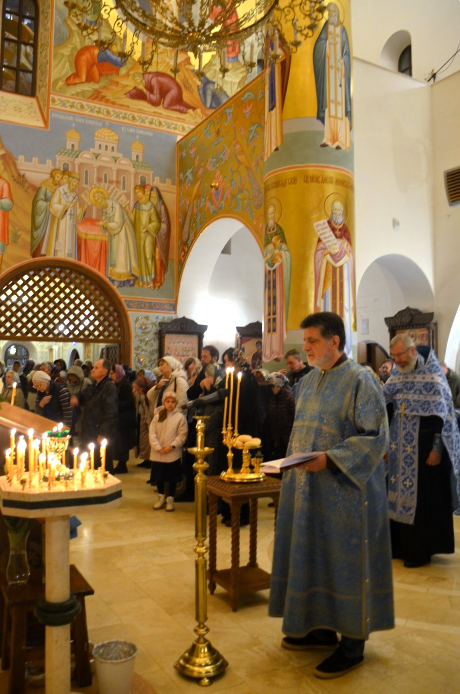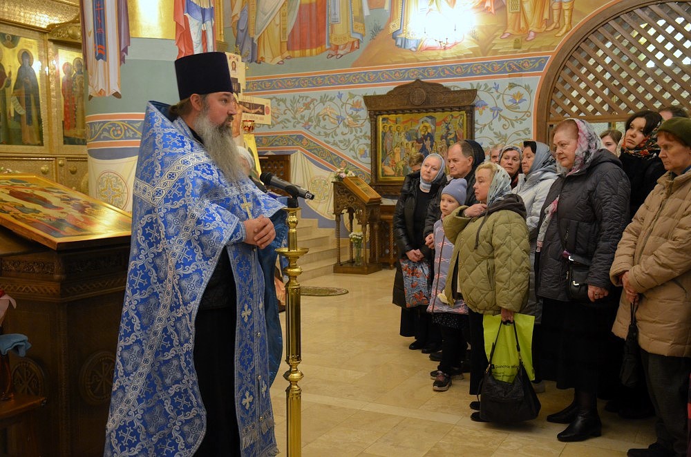 По окончании Богослужений настоятель храма поздравил прихожан с праздником Покрова Пресвятой Богородицы, а певчих - с днем их небесного покровителя, преподобного Романа Сладкопевца. В своей проповеди иерей Иоанн пожелал всем стараться всегда находиться под Покровом Пресвятой Богородицы "своей молитвой, своей благочестивой и богобоязненной жизнью".