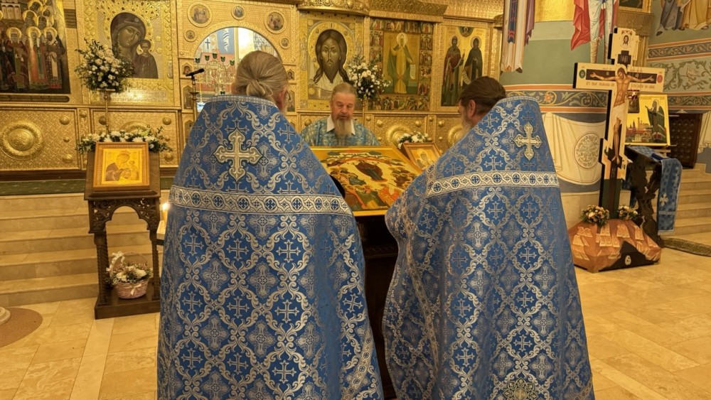 Чин освящения храмовой иконы совершил настоятель храма иерей Иоанн Омелянчук, после которого настоятель обратился к собравшимся с проповедью.