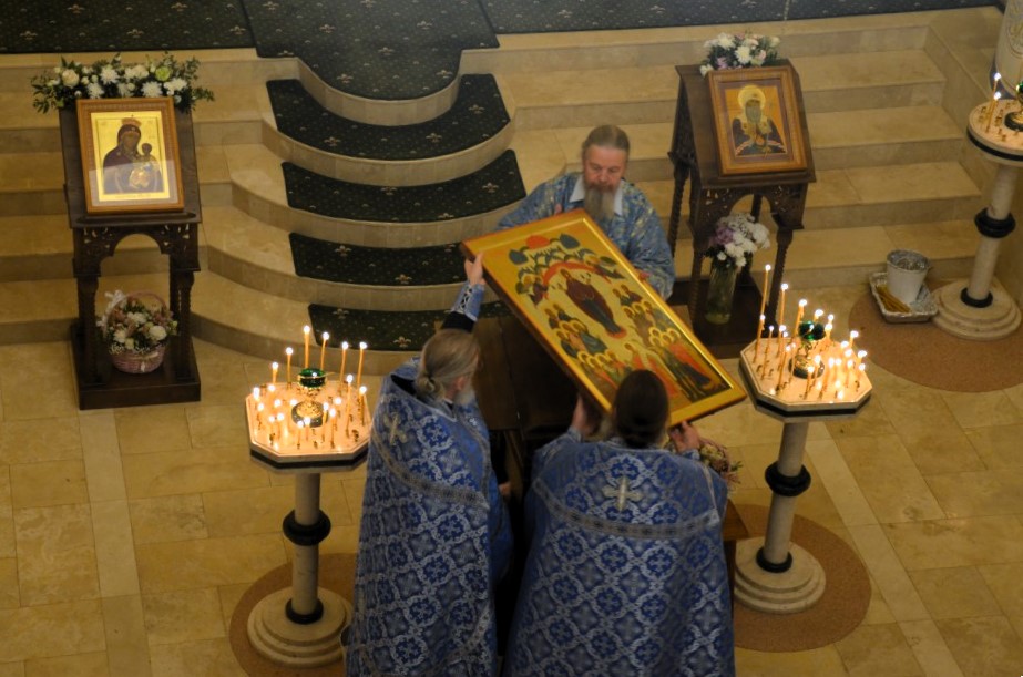 Накануне праздника, по окончании Всенощного бдения состоялось торжественное освящение иконы Покрова Пресвятой Богородицы, написанной для храма благодаря непосредственному участию прихожан храма. Благодарим всех, кто продолжает традицию благоукрашения храма!