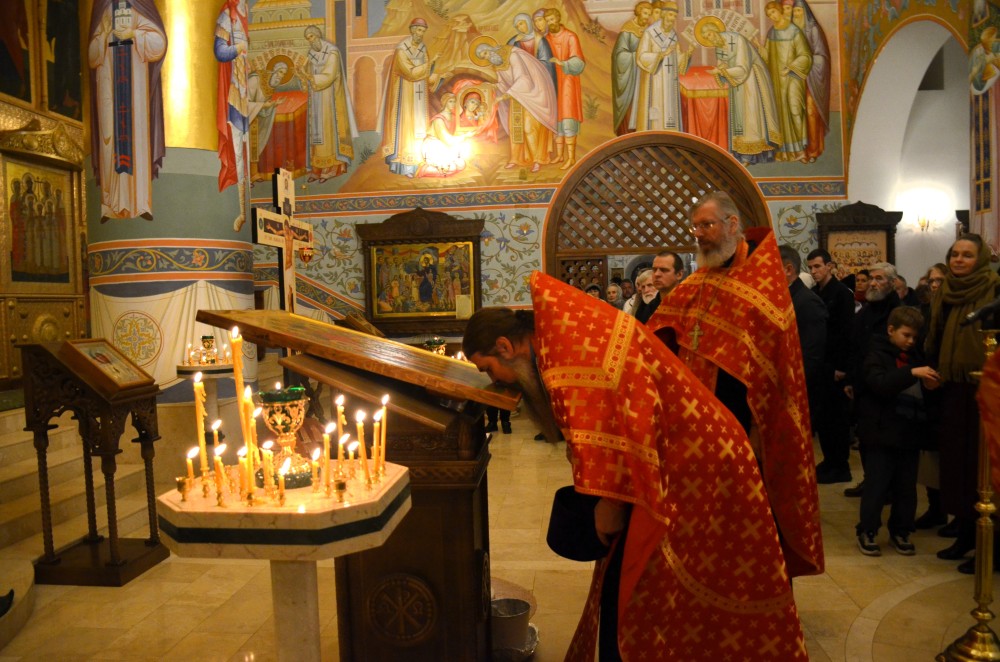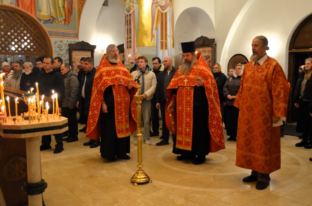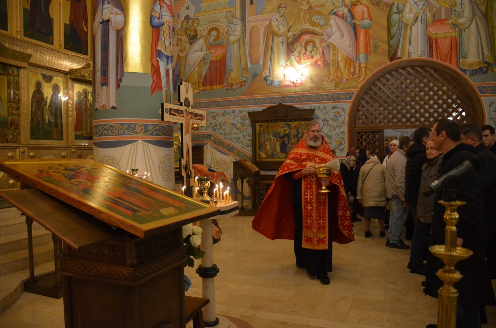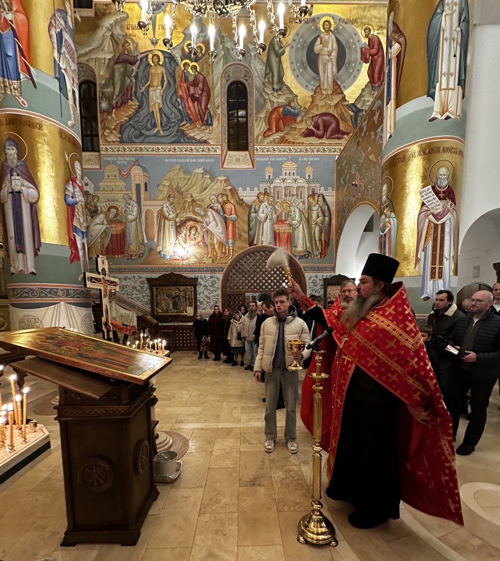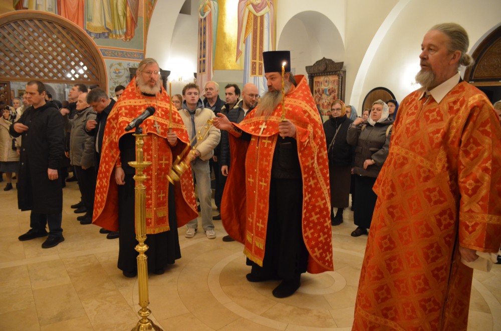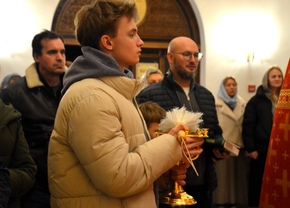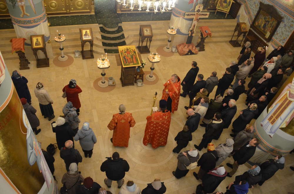 Чин освящения иконы "Собора Архистратига Божия Михаила и прочих Небесных Сил бесплотных" совершил настоятель храма иерей Иоанн Омелянчук в сослужении духовенства храма, после которого настоятель обратился с проповедью к собравшимся и поблагодарил всех, кто внес свою лепту в написание храмовой иконы для придела в честь преподобного Сергия Радонежского.
